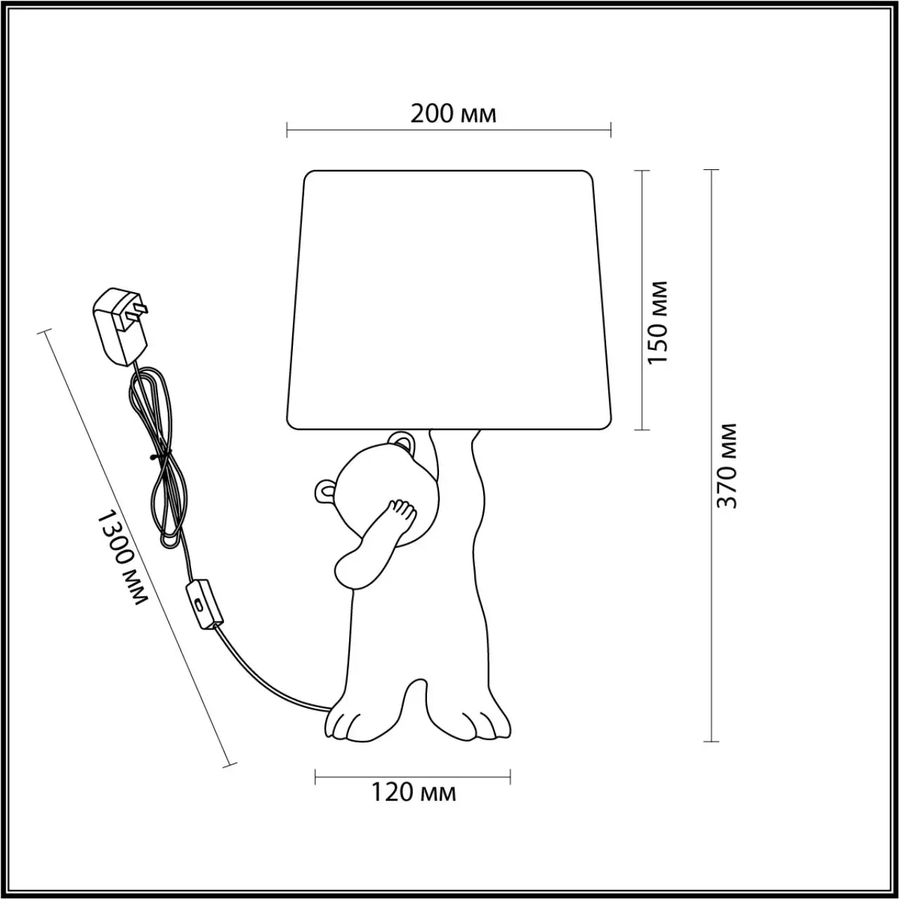 Артикул: 5663/1T; 0046511; Бренд: Lumion; Коллекция: MODERNI; Линия: BEAR; Стиль: Modern; Назначение: Настольная лампа; место размещения: в детскую; в спальню; Степень защиты: IP20; Площадь освещения, м2: 2; Напряжение питания, V: 220; Класс защиты: 2; Класс электро-безопасности: II; Температурный режим: 0...+40; Количество ламп: 1; Тип ламп: накаливания, Накаливания; Тип цоколя: E14; Мощность ламп, W: 40; Max мощность лампы, W: 40; Общая мощность, W: 40; Материал каркаса: Полирезин, полирезин; Материал плафона: текстиль, Текстиль; Поверхность каркаса: матовый; Поверхность плафона: матовый; Цвет: белый; Цвет каркаса: белый, Белый; Цвет плафона: белый, Белый; Тип выключателя: выключатель на шнуре; Гарантия, мес: 30; высота: 370; Диаметр, мм: 200; Вес, кг: 0,965; Вес упаковки, кг: 1,300; Длина упаковки, см: 43; Ширина упаковки, см: 42.5; Высота упаковки, см: 58.5; Объем упаковки, м3: 0,01235; Штрихкод: 4690344131254