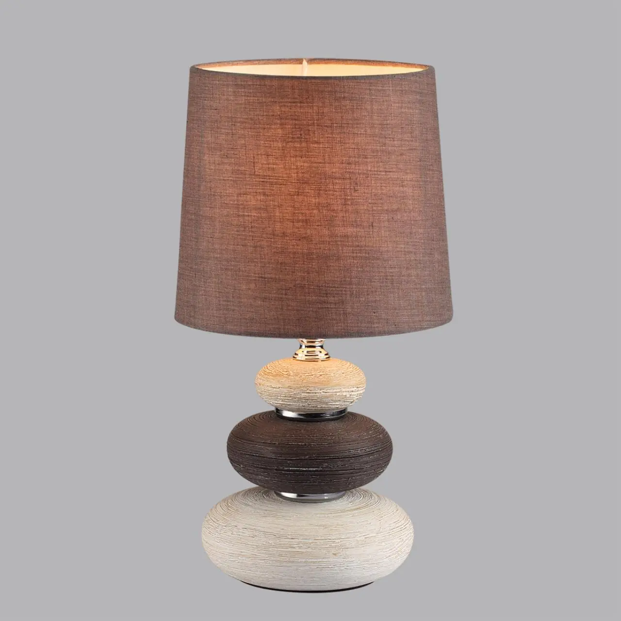 Артикул: 8126/1T; 0048158; Бренд: Lumion; Коллекция: COMFI; Линия: LATZA; Стиль: Modern; Назначение: Настольная лампа; место размещения: в гостиную; в спальню; Степень защиты: IP20; Площадь освещения, м2: 3; Напряжение питания, V: 220; Класс защиты: 2; Класс электро-безопасности: II; Температурный режим: 0...+40; Количество ламп: 1; Тип ламп: накаливания, Накаливания; Тип цоколя: E14; Мощность ламп, W: 1*40; Max мощность лампы, W: 40; Общая мощность, W: 40; Материал каркаса: керамика, Керамика; Материал плафона: текстиль, Текстиль; Поверхность каркаса: глянцевый; Поверхность плафона: матовый; Цвет: коричневый, бежевый, белый; Цвет каркаса: коричневый; бежевый; белый; Цвет плафона: коричневый, Коричневый; Тип выключателя: выключатель на шнуре; Гарантия, мес: 30; высота: 250; Диаметр, мм: 150; Вес, кг: 0,750; Вес упаковки, кг: 1,002; Длина упаковки, см: 34; Ширина упаковки, см: 34; Высота упаковки, см: 45; Объем упаковки, м3: 0,00538; Штрихкод: 4690344151849