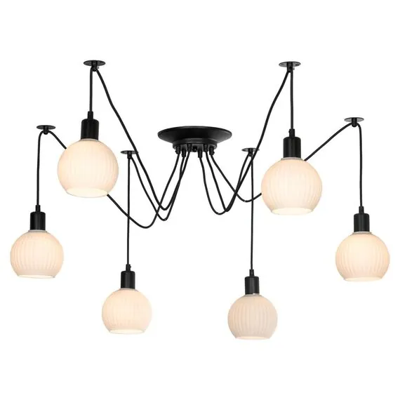 Артикул: LSP-8439; Бренд: Lussole; Серия: SHIRLEY; Стиль: Лофт; товарная группа: Люстра мультиплекс; Степень защиты: IP20; Общая мощность, W: 360; Количество ламп: 6; Тип ламп: без ламп; Тип цоколя: E27; Max мощность лампы, W: 60; Световой поток, Lm: не применимо; Материал каркаса: металл, Металл; Материал плафона: стекло, Стекло; Цвет каркаса: черный, Черный, Чёрный, чёрный; Лампы в комплекте: без ламп; Вес, кг: 1,6; Штрихкод: 4690304043092