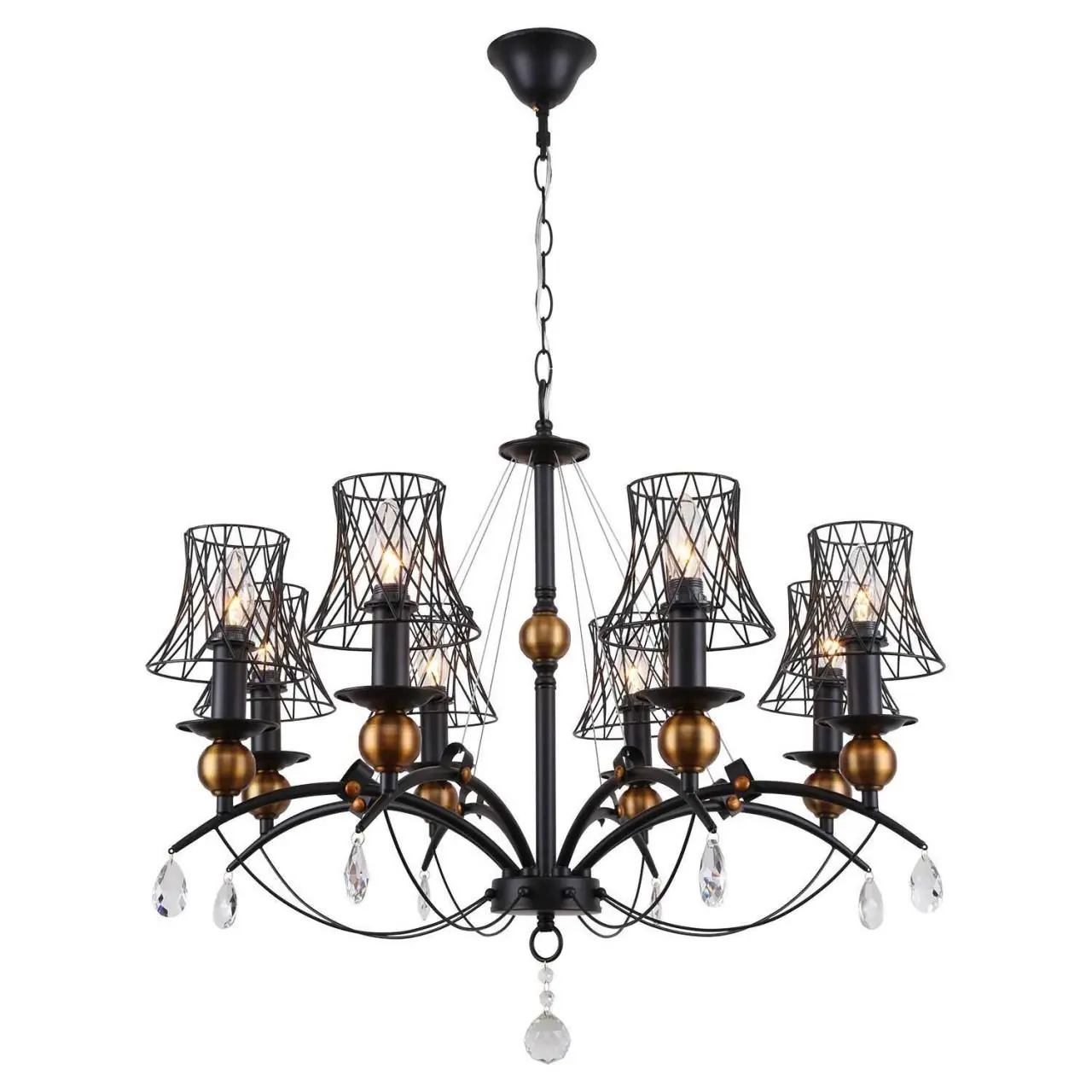 Артикул: LSP-8104; Бренд: Lussole; Серия: ARIVACA; Стиль: классика, Классика; товарная группа: Люстра подвесная; Тип крепления: Крюк; Степень защиты: IP20; Общая мощность, W: 320; Количество ламп: 8; Тип ламп: без ламп; Тип цоколя: E14; Max мощность лампы, W: 40; Световой поток, Lm: не применимо; Материал каркаса: металл, Металл; Материал плафона: металл, Металл; Цвет каркаса: черный, Черный, Чёрный, чёрный; Лампы в комплекте: без ламп; Вес, кг: 6,2; Штрихкод: 4690304027528