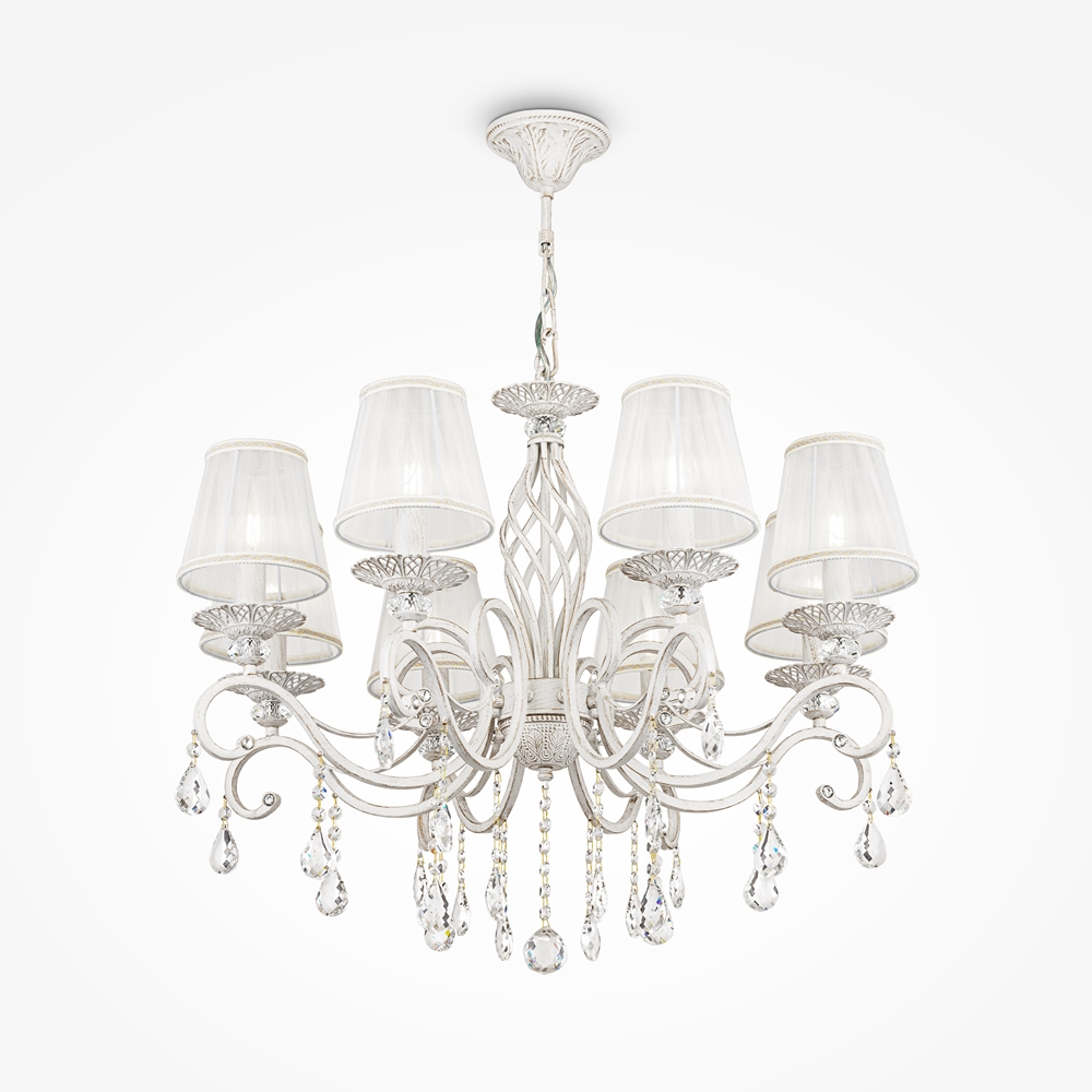 Артикул: ARM247-08-G; Бренд: Maytoni; Коллекция: Elegant; Серия: Grace; Тип крепления: Крюк; Напряжение питания, V: AC 220-240; Количество ламп: 8; Тип цоколя: E14; Мощность ламп, W: 40; Материал каркаса: металл, Металл; Цвет: белый; Цвет каркаса: белый, Белый; Лампы в комплекте: Нет; Гарантия, мес: 24; высота: 590; min высота: 790; max высота: 1190; Диаметр, мм: 720; Длина цепи, мм: 530; Вес, кг: 6.5; Вес упаковки, кг: 6.8; Длина упаковки, см: 43; Объем упаковки, м3: 0.03979; Штрихкод: 4260361981851