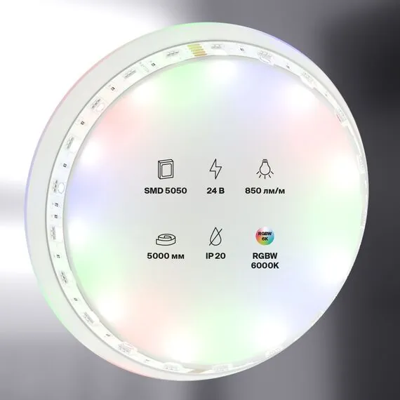 Артикул: 10178; Бренд: Maytoni; Коллекция: Led strip; Стиль: Техно; Степень защиты: IP20; Напряжение питания, V: 24; Угол рассеивания, град: 120; Тип цоколя: LED; Мощность ламп, W: 14,4; Световой поток, Lm: 850; Цветовая температура, K: RGB+6000; Индекс цветопередачи: 80; Материал каркаса: металл, Металл; Цвет каркаса: белый, Белый; Гарантия, мес: 36; Длина, мм: 5000; Ширина, мм: 10; высота: 2; Длина упаковки, см: 186; Ширина упаковки, см: 159; Объем упаковки, м3: 0.384462; Штрихкод: 4251110039046