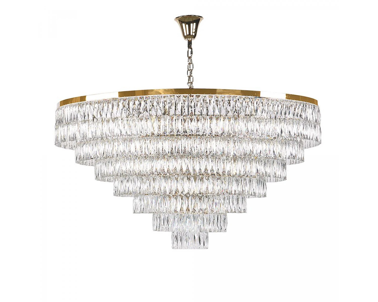 Артикул: 10129+37/C gold; М0062141; Бренд: Newport; Серия: ELIZABET 10120; Тип светильника: Люстра; место размещения: для кафе, для загородного дома, для спальни, для кабинета, для гостиной, для ресторана; Форма: Круглая; Степень защиты: IP20; Напряжение питания, V: 220; Количество ламп: 46; Тип цоколя: E14; Мощность ламп, W: 60; Общая мощность, W: 2760; Материал каркаса: Железо; Цвет каркаса: Полированное шапманское золото; высота: 2350; Диаметр, мм: 1550; Длина цепи, мм: 1500