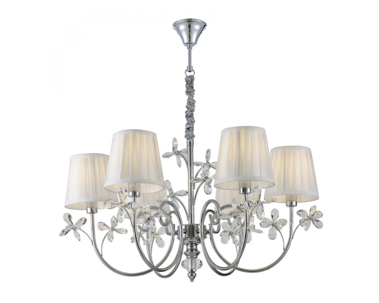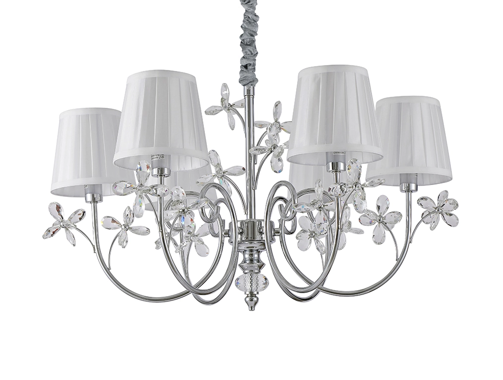Артикул: 1176/C; М0070203; Бренд: Newport; Серия: EMILIA 1170; Тип светильника: Люстра; место размещения: для кафе, для прихожей, для кухни, для загородного дома, для спальни, для кабинета, для гостиной, для дачи, для ресторана; Форма: Круглая; Степень защиты: IP20; Напряжение питания, V: 220; Количество ламп: 6; Тип цоколя: E14; Мощность ламп, W: 60; Общая мощность, W: 360; Материал каркаса: Железо; Материал плафона: Поликкотон; Цвет каркаса: хром, Хром; Цвет плафона: белый, Белый; высота: 1370; Диаметр, мм: 730; Длина цепи, мм: 1000