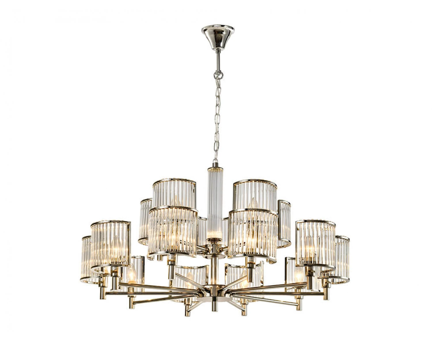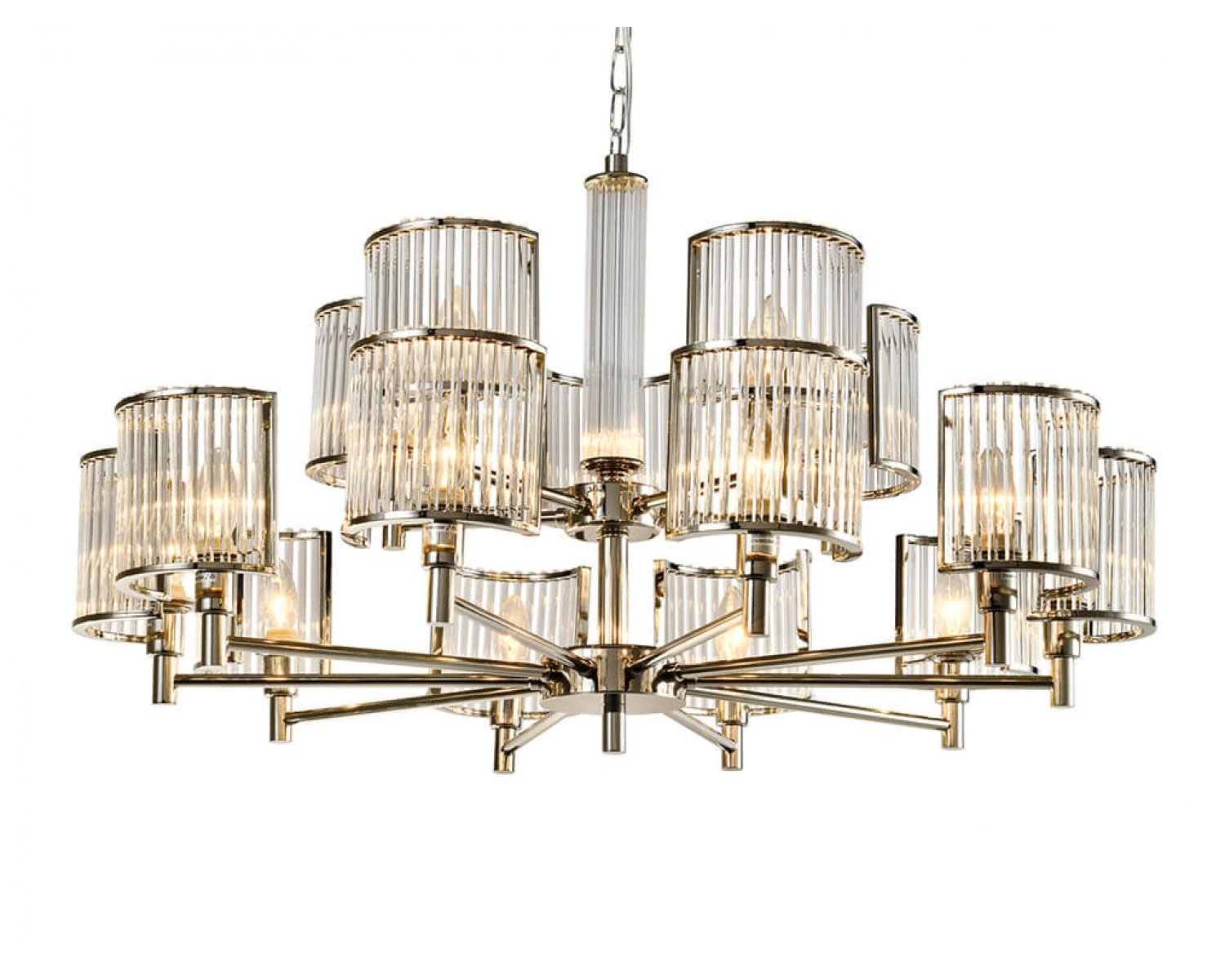 Артикул: 12510+5/C; М0065046; Бренд: Newport; Серия: REBECCA 12500; Тип светильника: Люстра; место размещения: для кафе, для прихожей, для кухни, для загородного дома, для спальни, для кабинета, для детской, для гостиной, для дачи, для ресторана; Форма: Круглая; Степень защиты: IP20; Напряжение питания, V: 220; Количество ламп: 15; Тип цоколя: E14; Мощность ламп, W: 60; Общая мощность, W: 900; Материал каркаса: Железо; Материал плафона: стекло, Стекло; Цвет каркаса: никель, Никель; Цвет плафона: прозрачный, Прозрачный; высота: 1530; Диаметр, мм: 890; Длина цепи, мм: 1000
