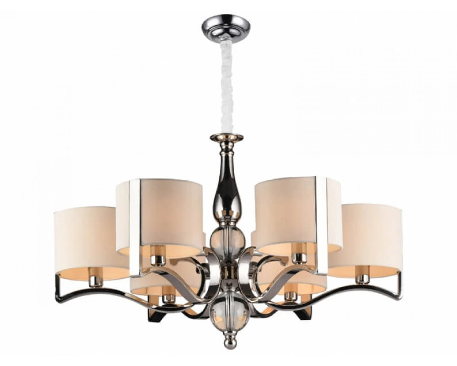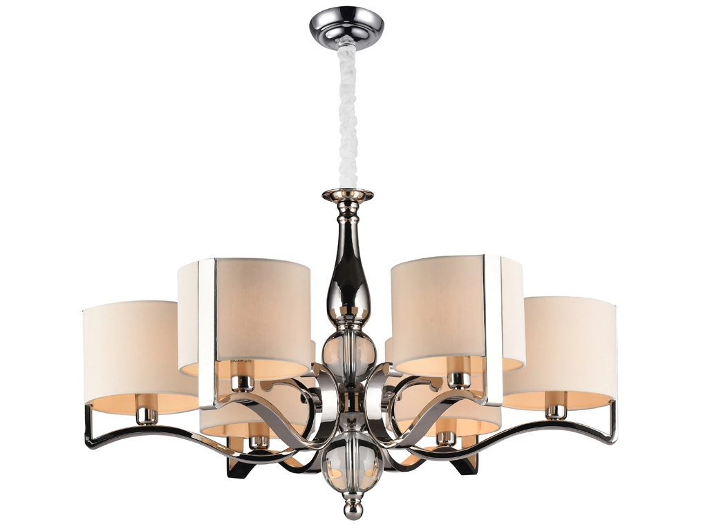Артикул: 31305+1/C; М0055965; Бренд: Newport; Серия: MISSURI 31300; Стиль: Crystal; Тип светильника: Люстра; место размещения: для кафе, для прихожей, для кухни, для загородного дома, для спальни, для кабинета, для детской, для гостиной, для дачи, для ресторана; Форма: Круглая; Степень защиты: IP20; Напряжение питания, V: 220; Количество ламп: 6; Тип цоколя: E14; Мощность ламп, W: 60; Общая мощность, W: 360; Материал каркаса: Железо; Материал плафона: Хлопок1; Цвет каркаса: никель, Никель; Цвет плафона: бежевый, Бежевый; высота: 1500; Диаметр, мм: 730; Длина цепи, мм: 1000