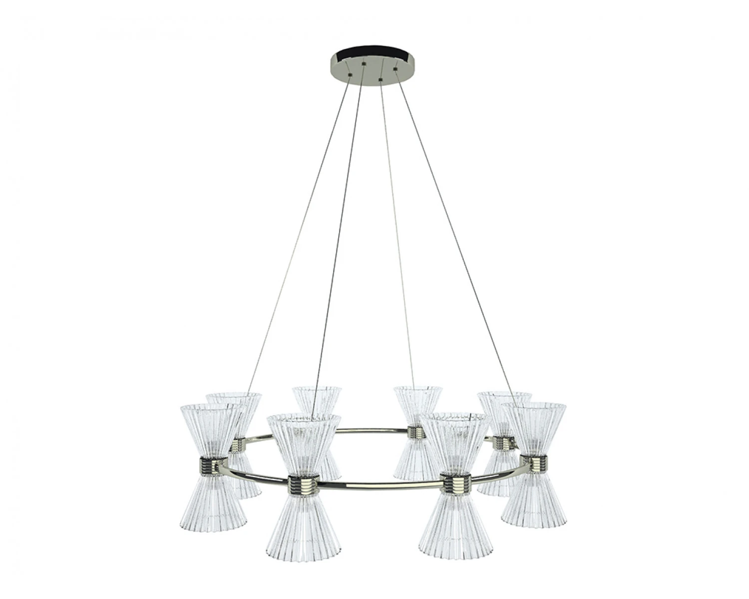 Артикул: 3618/S nickel; М0062660; Бренд: Newport; Серия: KRISTINA 3610; Стиль: Fusion; Тип светильника: Подвесной светильник; место размещения: для кафе, для прихожей, для загородного дома, для спальни, для кабинета, для гостиной, для дачи, для ресторана; Форма: Круглая; Степень защиты: IP20; Напряжение питания, V: 220; Количество ламп: 16; Тип цоколя: E14; Мощность ламп, W: 60; Общая мощность, W: 960; Материал каркаса: Железо; Материал плафона: стекло, Стекло; Цвет каркаса: никель, Никель; Цвет плафона: прозрачный, Прозрачный; высота: 1200; Диаметр, мм: 850; Длина цепи, мм: #VALUE!