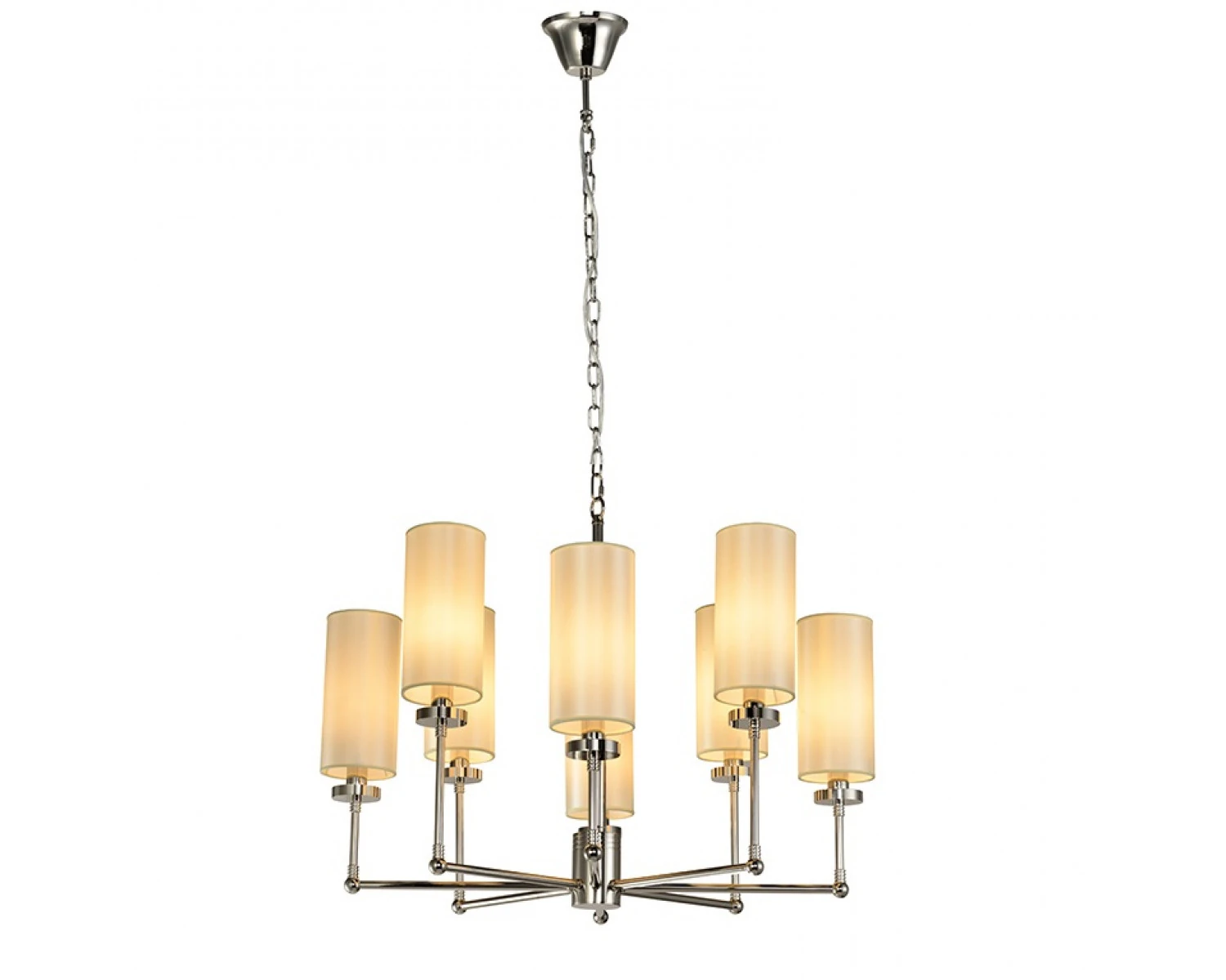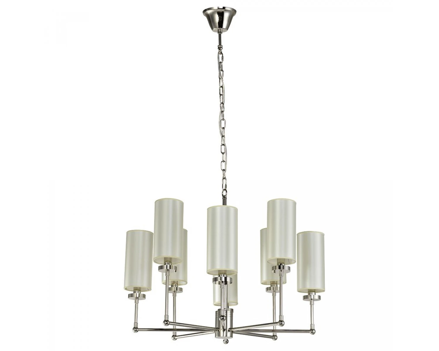 Артикул: 7264+4/C nickel без абажуров; Бренд: Newport; Серия: 7260; Стиль: Crystal; Тип светильника: Люстра; место размещения: для кафе, для прихожей, для кухни, для загородного дома, для спальни, для кабинета, для гостиной, для дачи, для ресторана; Форма: Круглая; Степень защиты: IP20; Напряжение питания, V: 220; Количество ламп: 8; Тип цоколя: E14; Мощность ламп, W: 40; Общая мощность, W: 320; Материал каркаса: Железо; Материал плафона: Шелк1; Цвет каркаса: никель, Никель; Цвет плафона: Не в комплекте Белый или Бежевый; высота: 1600; Диаметр, мм: 810; Длина цепи, мм: 1000