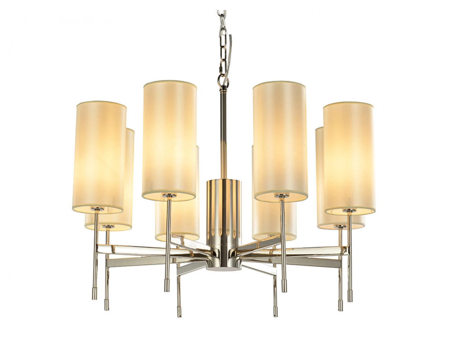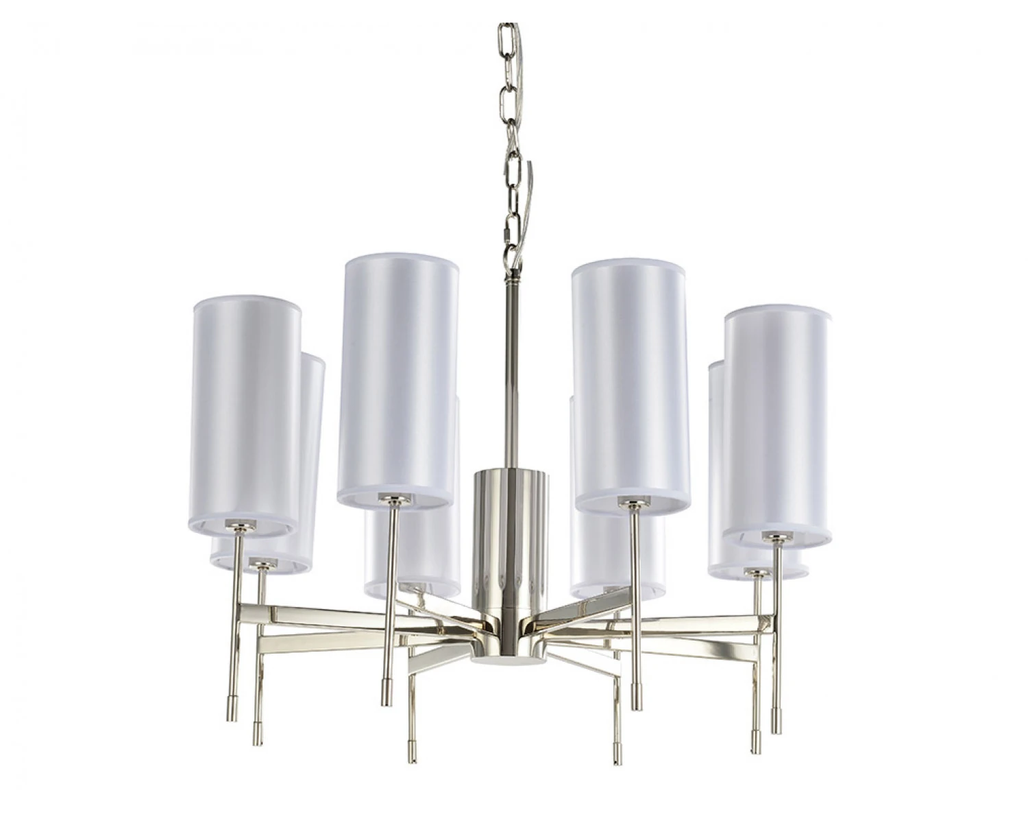 Артикул: 7328/C без абажуров; М0063538; Бренд: Newport; Серия: ELLA 7320; Стиль: Fusion; Тип светильника: Люстра; место размещения: для кафе, для прихожей, для кухни, для загородного дома, для спальни, для кабинета, для гостиной, для дачи, для ресторана; Форма: Круглая; Степень защиты: IP20; Напряжение питания, V: 220; Количество ламп: 8; Тип цоколя: E14; Мощность ламп, W: 60; Общая мощность, W: 480; Материал каркаса: Железо; Цвет каркаса: никель, Никель; Цвет плафона: Не в комплекте Белый или Бежевый; высота: 1480; Диаметр, мм: 700; Длина цепи, мм: 1000