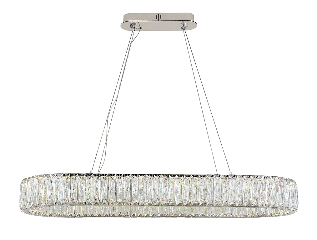 Артикул: 8240/90 oval; М0067857; Бренд: Newport; Серия: CRYSTAL 8240; Стиль: Crystal; Тип светильника: Подвесной светильник; место размещения: для кафе, для прихожей, для кухни, для загородного дома, для спальни, для кабинета, для детской, для ванной, для гостиной, для ресторана; Форма: Овальная; Степень защиты: IP20; Напряжение питания, V: 220; Количество ламп: 1; Тип цоколя: LED; Мощность ламп, W: 42; Общая мощность, W: 42; Материал каркаса: Нержавеющая Сталь, Нержавеющая сталь; Цвет каркаса: хром, Хром; Длина, мм: 300; Ширина, мм: 900; высота: 2500; Длина цепи, мм: 2400