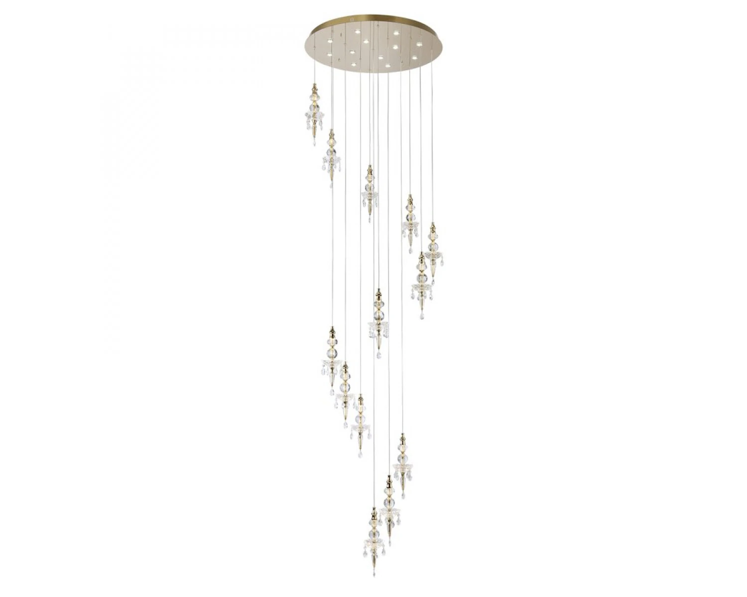 Артикул: 8360/800 gold; М0070008; Бренд: Newport; Серия: STELLA 8360; Тип светильника: Потолочный светильник; место размещения: для кафе, для прихожей, для кухни, для загородного дома, для спальни, для кабинета, для детской, для ванной, для гостиной, для дачи, для ресторана; Форма: Круглая; Степень защиты: IP20; Напряжение питания, V: 220; Количество ламп: 12+13; Тип цоколя: GU4 + LED; Мощность ламп, W: 5W + 2W; Общая мощность, W: 86; Материал каркаса: Железо; Материал плафона: хрусталь, Хрусталь; Цвет каркаса: золото, Золото; Цвет плафона: прозрачный, Прозрачный; высота: 3000; Диаметр, мм: 800; Длина цепи, мм: 2630