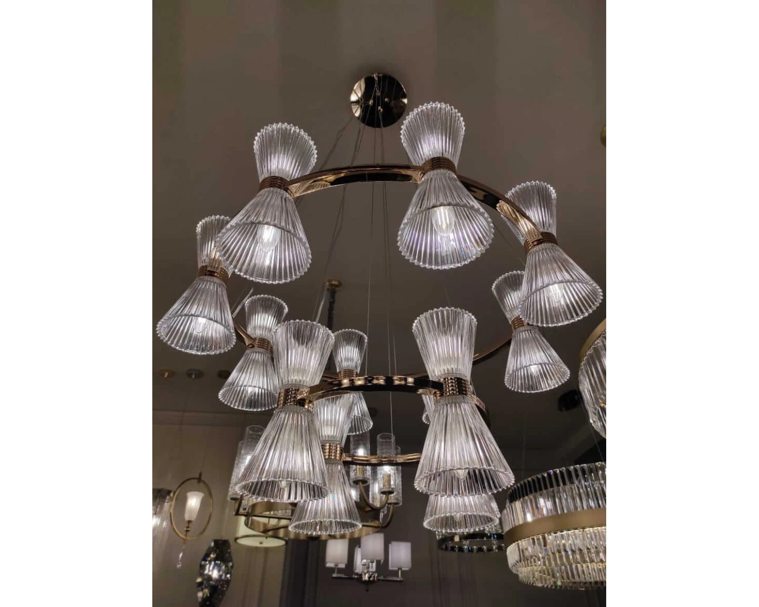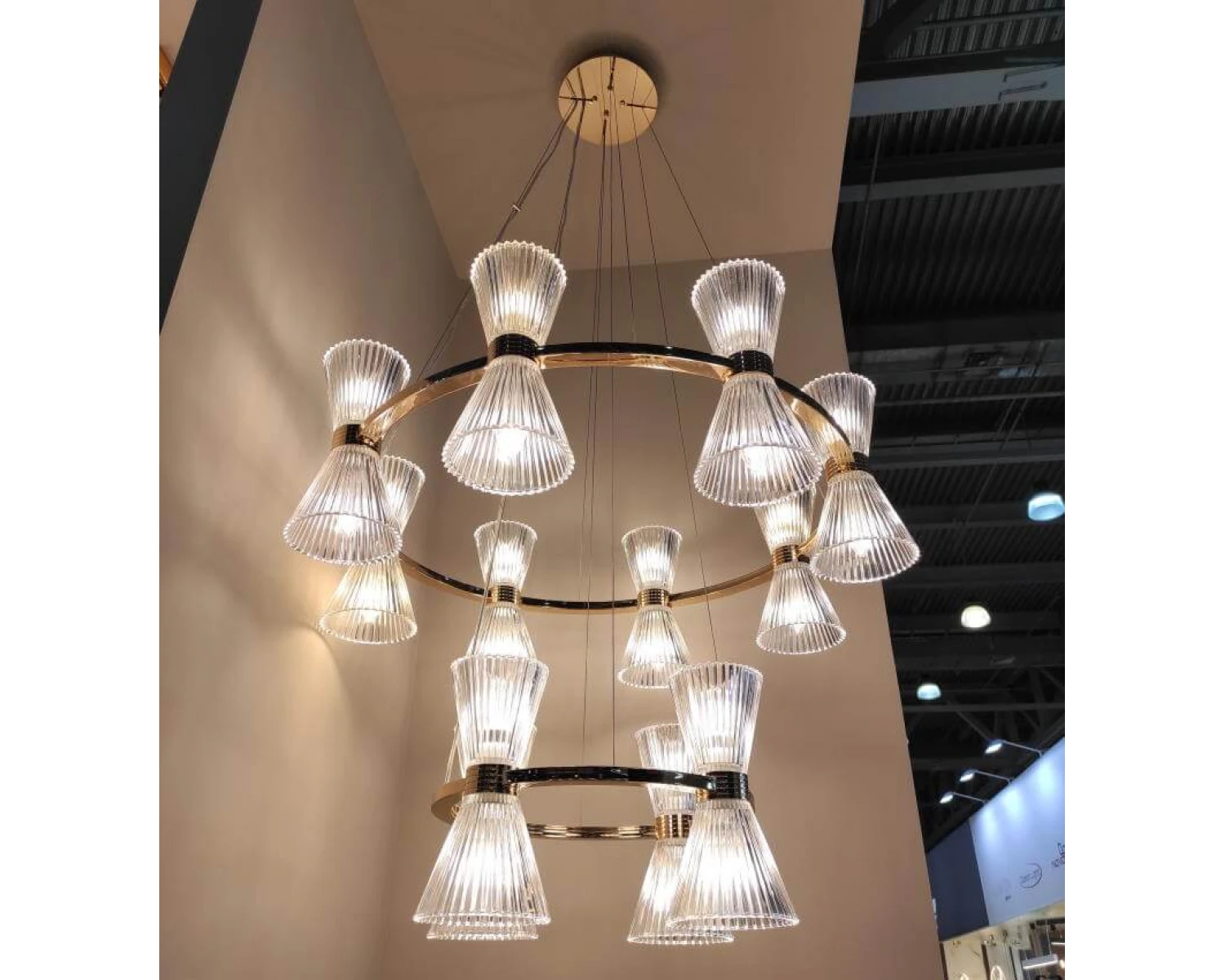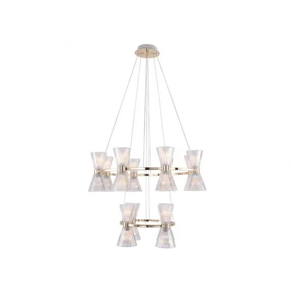 Артикул: S3610_001G; Бренд: Newport; Серия: KRISTINA 3610; Тип светильника: Подвесной светильник; место размещения: для кафе, для кухни, для загородного дома, для спальни, для кабинета, для гостиной, для ресторана; Форма: Круглая; Степень защиты: IP20; Напряжение питания, V: 220; Количество ламп: 24; Тип цоколя: E14; Мощность ламп, W: 60; Общая мощность, W: 1440; Материал каркаса: Железо; Цвет каркаса: золото, Золото; высота: 1200; Диаметр, мм: 850, 500