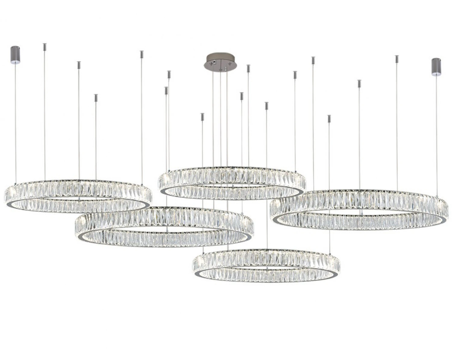 Артикул: S8240_024CH; Бренд: Newport; Серия: CRYSTAL 8240; Тип светильника: Подвесной светильник; место размещения: для кафе, для загородного дома, для спальни, для кабинета, для гостиной, для ресторана; Форма: Хаотичная; Степень защиты: IP20; Напряжение питания, V: 220; Количество ламп: 5; Тип цоколя: LED; Мощность ламп, W: 50/50/36/36/36; Общая мощность, W: 208; Материал каркаса: Нержавеющая Сталь, Нержавеющая сталь; Цвет каркаса: хром, Хром; высота: 2500; Диаметр, мм: 800, 600