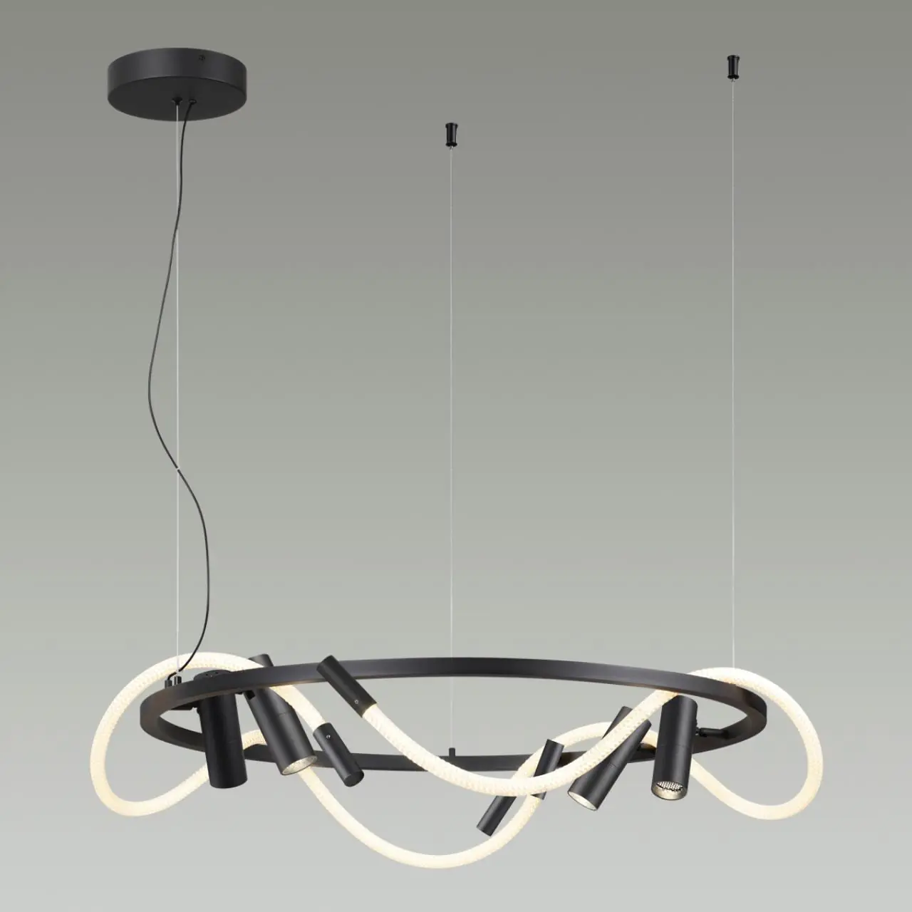 Артикул: 4391/55L; 0046032; Бренд: Odeon Light; Коллекция: HIGHTECH; Линия: CORDA; Стиль: High-tech; Назначение: Подвесной светильник; Тип светильника: Накладной; место размещения: в гостиную; в спальню; Тип крепления: крепление на планке; Степень защиты: IP20; Площадь освещения, м2: 18; Напряжение питания, V: 220; Угол рассеивания, град: 360; Угол поворота, град: 180/350; Класс защиты: I; Класс электро-безопасности: I; Температурный режим: 0-(+40); Количество ламп: 1; Тип ламп: светодиодная (LED); Тип цоколя: LED; Мощность ламп, W: 1*55; Max мощность лампы, W: 50; Общая мощность, W: 50; Напряжение лампы, V: 220V; Световой поток, Lm: 2010; Цветовая температура, K: 4000; Цвет LED: теплый свет; Материал каркаса: металл, Металл; Материал плафона: акрил, Акрил; Поверхность каркаса: матовый; Поверхность плафона: матовый; Цвет: черный; Цвет каркаса: черный, Черный, Чёрный, чёрный; Цвет плафона: белый, Белый; Гарантия, мес: 30; высота: 1200; Диаметр, мм: 900; Вес, кг: 3,100; Вес упаковки, кг: 5.985; Длина упаковки, см: 85.5; Ширина упаковки, см: 86; Высота упаковки, см: 8.5; Объем упаковки, м3: 0,06250; Штрихкод: 4690344126144
