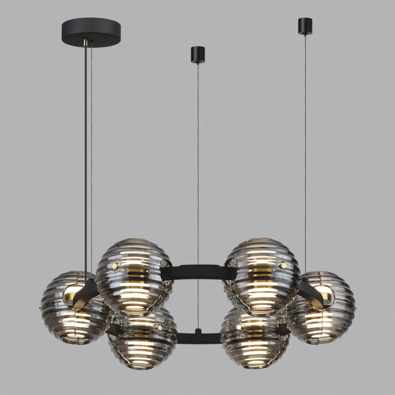 Артикул: 5041/60L; 0046975; Бренд: Odeon Light; Коллекция: L-VISION; Линия: TRONI; Стиль: Modern; Назначение: Люстра; место размещения: в гостиную; на спальню; Тип крепления: планка; Степень защиты: IP20; Площадь освещения, м2: 28; Напряжение питания, V: 220; Класс защиты: I; Класс электро-безопасности: I; Температурный режим: 0-(+40); Тип ламп: светодиодная (LED); Тип цоколя: LED; Мощность ламп, W: 60; Напряжение лампы, V: 220V; Световой поток, Lm: 6086; Цветовая температура, K: 4000; Цвет LED: дневной свет; Материал каркаса: металл, Металл; Материал плафона: стекло, Стекло; Поверхность каркаса: матовый; Поверхность плафона: глянцевый; Цвет: черн./золото/дымчатый; Цвет каркаса: черный, Черный, Чёрный, чёрный; Цвет плафона: черный, Черный, чёрный; Гарантия, мес: 30; Ширина, мм: 630; высота: 1300; Диаметр, мм: 630; Вес, кг: 8,200; Вес упаковки, кг: 19.22; Длина упаковки, см: 78; Ширина упаковки, см: 78; Высота упаковки, см: 23; Объем упаковки, м3: 0,13993; Штрихкод: 4690344139526