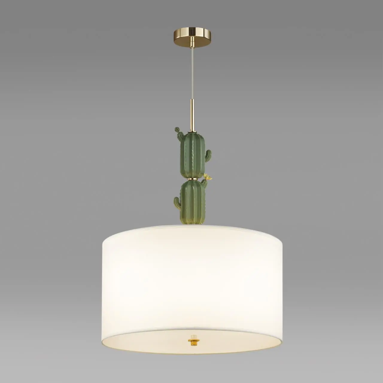 Артикул: 5425/3; 0047225; Бренд: Odeon Light; Коллекция: MODERN; Линия: CACTUS; Стиль: Modern; Назначение: Люстра; место размещения: Интерьерный; Тип крепления: крепление на планке; Степень защиты: IP20; Площадь освещения, м2: 9; Напряжение питания, V: 220; Класс защиты: I; Класс электро-безопасности: I; Температурный режим: 0-(+40); Количество ламп: 3; Тип ламп: накаливания, Накаливания; Тип цоколя: E27; Мощность ламп, W: 3*60; Max мощность лампы, W: 60; Общая мощность, W: 180; Напряжение лампы, V: 220V; Материал каркаса: металл/керамика; Материал плафона: ткань, Ткань; Поверхность каркаса: глянцевый; Поверхность плафона: матовый; Цвет: золотой/зеленый/белый; Цвет каркаса: золотой, Золотой; Цвет плафона: белый, Белый; Гарантия, мес: 30; Ширина, мм: 450; высота: 640-2150; Диаметр, мм: 450; Вес, кг: 1,900; Вес упаковки, кг: 4.265; Длина упаковки, см: 51.5; Ширина упаковки, см: 52.5; Высота упаковки, см: 36.5; Объем упаковки, м3: 0,09869; Штрихкод: 4690344134095