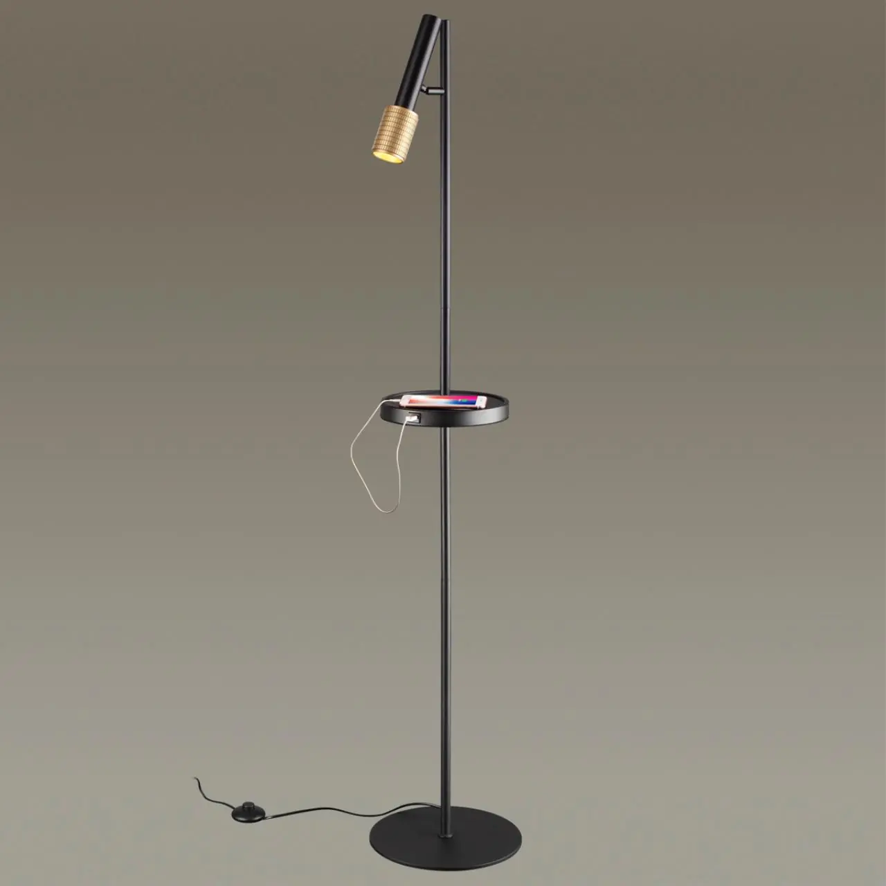 Артикул: 4240/1F; 0043389; Бренд: Odeon Light; Коллекция: HIGHTECH; Линия: MEHARI; Стиль: High-tech; Назначение: Торшер с полкой/USB; место размещения: Интерьерный; Тип крепления: крепление на планке; Степень защиты: IP20; Площадь освещения, м2: 3; Напряжение питания, V: 220; Класс защиты: II; Класс электро-безопасности: II; Температурный режим: 0-(+40); Количество ламп: 1; Тип ламп: светодиодная, Светодиодная; Тип цоколя: GU10 LED; Мощность ламп, W: 10; Max мощность лампы, W: 10; Общая мощность, W: 10; Напряжение лампы, V: 220V; Материал каркаса: металл, Металл; Материал плафона: металл, Металл; Поверхность каркаса: матовый; Поверхность плафона: матовый; Цвет: черный/золотистый/металл; Цвет каркаса: черный, Черный, Чёрный, чёрный; Цвет плафона: черный, Черный, чёрный; Гарантия, мес: 30; высота: 1600; Диаметр, мм: 300; Вес, кг: 6,985; Вес упаковки, кг: 7.891; Длина упаковки, см: 31; Ширина упаковки, см: 70; Высота упаковки, см: 31; Объем упаковки, м3: 0,07219; Штрихкод: 4690344100267