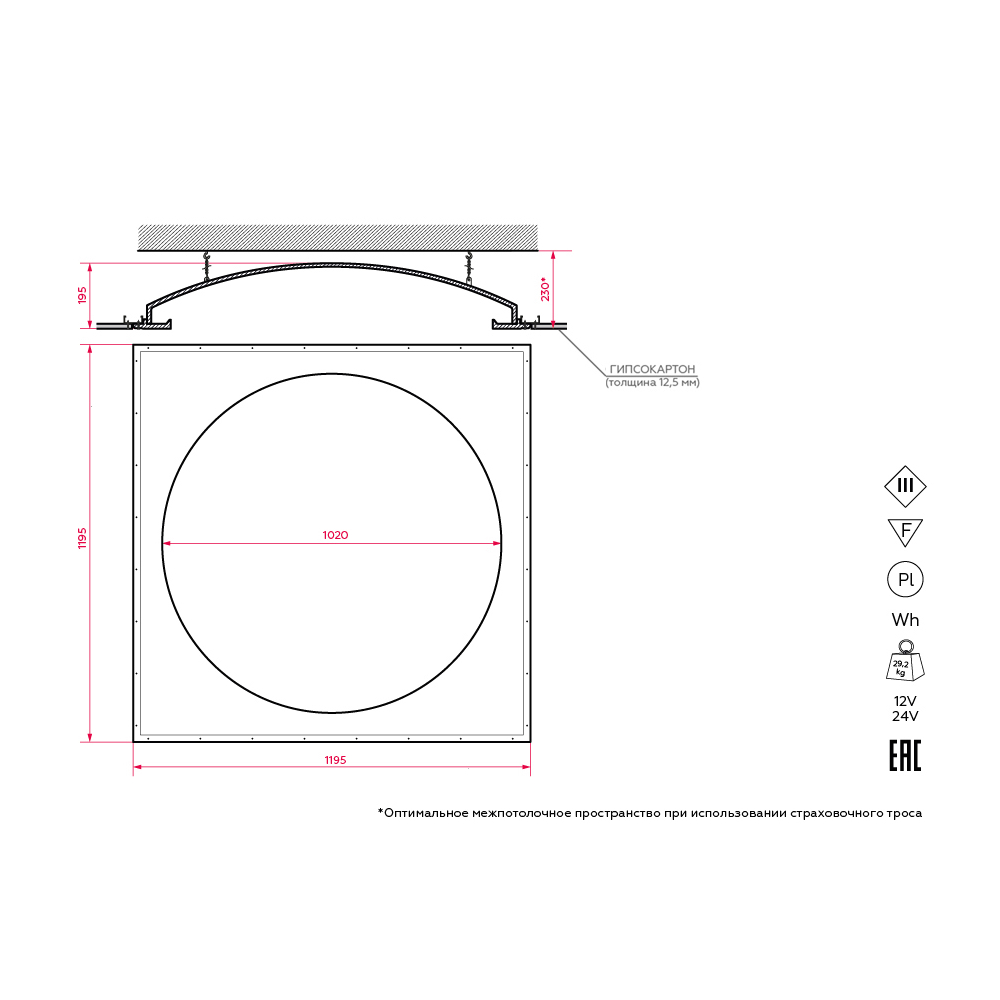 Артикул: SN 420; Бренд: Stellanova; товарная группа: купольный встраиваемый; Материал: высокопрочный микроармированный гипс, металл; Цвет: белый (под покраску); Комплектация: Корпус гипсовый - 1 шт; Основание гипсовое - 4 шт; Радиатор алюминиевый под светодиодную ленту (3,45 м) - 1 шт; Болт анкерный с крюком - 4 шт; Трос стальной страховочный (4 м) - 1 шт; Зажим для троса - 8 шт; Руководство по эксплуатации и установке - 1 шт;; Размер видимой части: Ø1020 мм; Габариты: 1195/1195/195 мм; Вес, кг: 29,20 кг