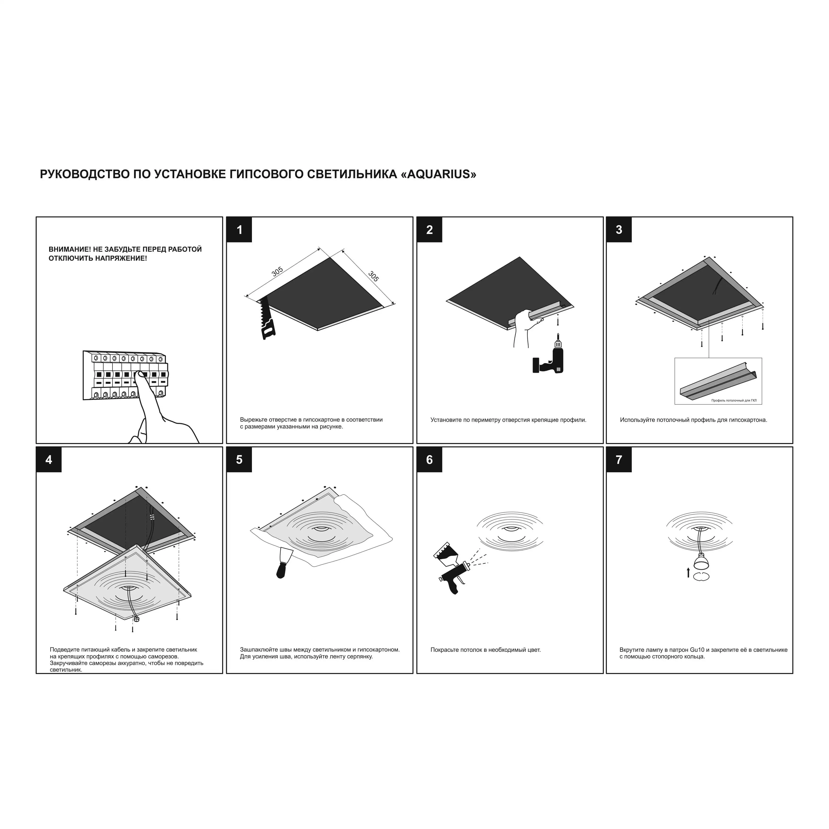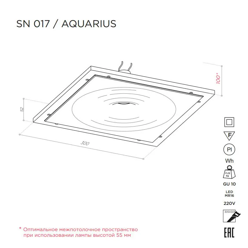 Артикул: SN 017; Бренд: Stellanova; товарная группа: встраиваемый потолочный; Материал: высокопрочный микроармированный гипс, поликарбонат, металл; Цвет: белый (под покраску); Комплектация: Корпус гипсовый - 1 шт; Патрон керамический GU10 - 1 шт; Клемма соединительная - 2 шт; Кольцо стопорное - 1 шт; Руководство по эксплуатации и установке - 1 шт; Упаковка индивидуальная (пенопласт, картон) - 1 шт;; Размер видимой части: Ø245 мм; Габариты: 300/300/52 мм; Вес, кг: 2,30 кг