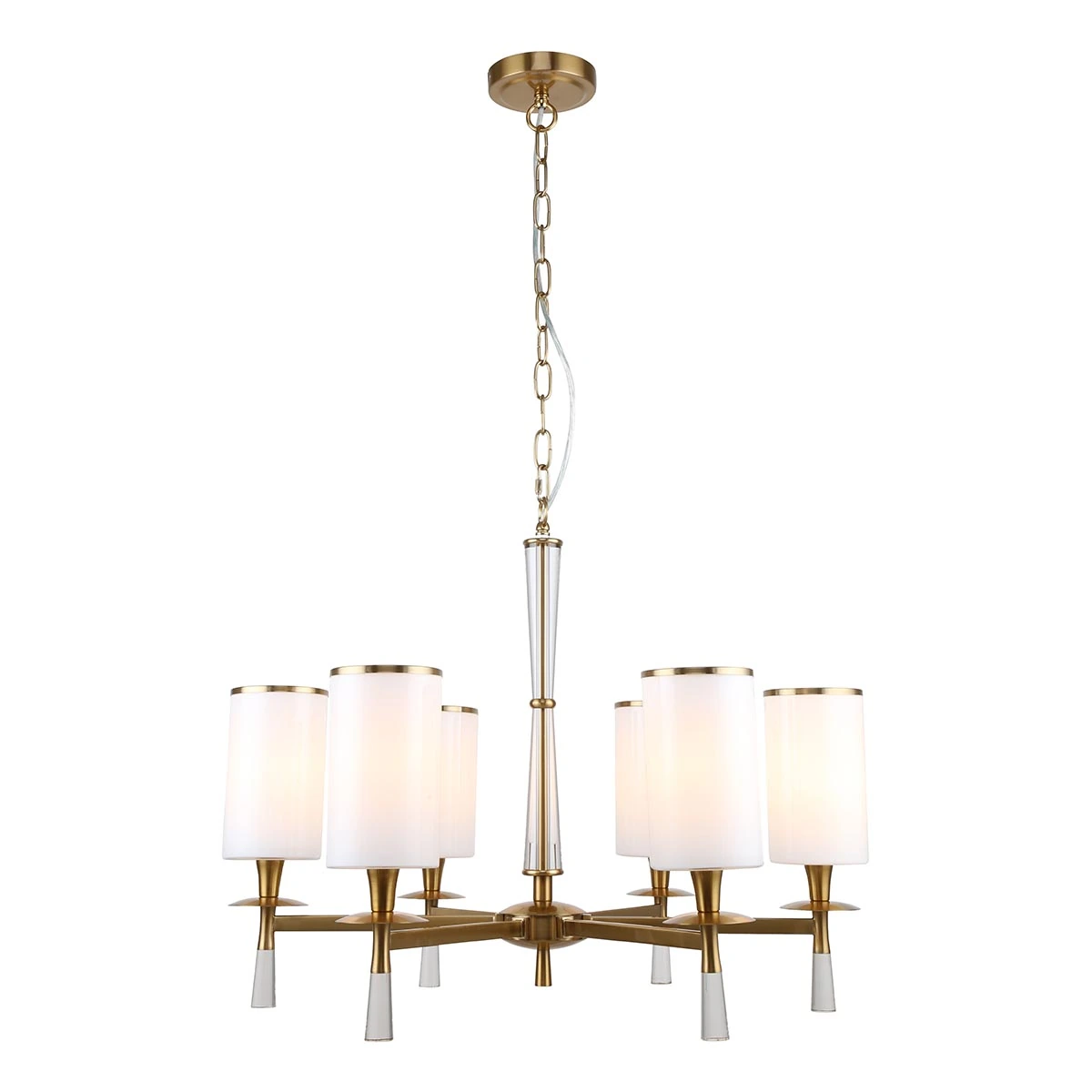 Артикул: 1047/05/06P; Бренд: Stilfort; Коллекция: Leader; Стиль: Art Deco; место размещения: Для спальни; Форма: Цилиндр; Тип крепления: На планку; На потолок; Степень защиты: IP20; Площадь освещения, м2: 13; Напряжение питания, V: 220-240; Натяжные потолки: Да; Количество ламп: 6; Тип ламп: накаливания, Накаливания; Тип цоколя: E14; Мощность ламп, W: 40; Общая мощность, W: 240; Материал каркаса: металл, Металл; Материал плафона: стекло, Стекло; Цвет: белый; Цвет каркаса: золото, Золото; Цвет плафона: белый, Белый; Гарантия, мес: 12; высота: 640; Диаметр, мм: 660; Длина подвеса, мм: 355