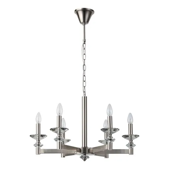 Артикул: 1048/11/06P; Бренд: Stilfort; Коллекция: Albert; Стиль: Neo Classic; место размещения: Для кухни; Форма: Без плафона; Тип крепления: На потолок; Степень защиты: IP20; Напряжение питания, V: 220-240; Натяжные потолки: Да; Количество ламп: 6; Тип ламп: накаливания, Накаливания; Тип цоколя: E14; Мощность ламп, W: 40; Общая мощность, W: 240; Материал каркаса: металл, Металл; Цвет: никель; Цвет каркаса: никель, Никель; Гарантия, мес: 12; высота: 390; Диаметр, мм: 650; Длина подвеса, мм: 260