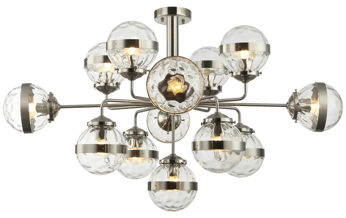 Артикул: 2134/11/13P; Бренд: Stilfort; Коллекция: Sogno; Стиль: Modern; место размещения: Для гостиной; Форма: Шар; Тип крепления: На потолок; Степень защиты: IP20; Напряжение питания, V: 220-240; Натяжные потолки: Да; Количество ламп: 13; Тип ламп: накаливания, Накаливания; Тип цоколя: E27; Мощность ламп, W: 40; Общая мощность, W: 520; Материал каркаса: металл, Металл; Материал плафона: стекло, Стекло; Цвет: никель; Цвет каркаса: никель, Никель; Цвет плафона: прозрачный, Прозрачный; Гарантия, мес: 12; высота: 1250; Диаметр, мм: 1050