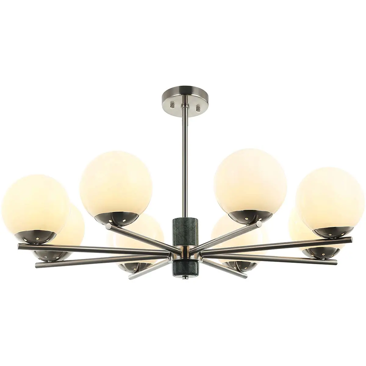 Артикул: 2150/11/08P; Бренд: Stilfort; Коллекция: Sharo; Стиль: Современный; место размещения: Для гостиной; Форма: Шар; Тип крепления: На потолок; Степень защиты: IP20; Напряжение питания, V: 220-240; Натяжные потолки: Да; Количество ламп: 8; Тип ламп: накаливания, Накаливания; Тип цоколя: E27; Мощность ламп, W: 40; Общая мощность, W: 320; Материал каркаса: металл, Металл; Материал плафона: стекло, Стекло; Цвет: белый; Цвет каркаса: никель, Никель; Цвет плафона: белый, Белый; Гарантия, мес: 12; высота: 965; Диаметр, мм: 850