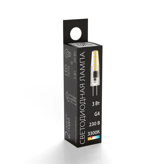 Артикул: BLG413; Бренд: Elektrostandard; Серия: G4 LED; Питание: 170-240 В, 50 Гц; Угол рассеивания, град: 360; Электромагнитная совместимость: Нет; Температурный режим: -20 ... +40; Тип цоколя: G4; Общая мощность, W: 3; Световой поток, Lm: 270; Цветовая температура, K: 6500; Индекс цветопередачи: >80; Срок службы светодиодов, ч: 50000; Материал: пластик;металл; Наличие поворотного механизма: 10; Умный дом: совместим с умным реле; Гарантия, мес: 24; Длина, мм: 10; Ширина, мм: 10; высота: 36