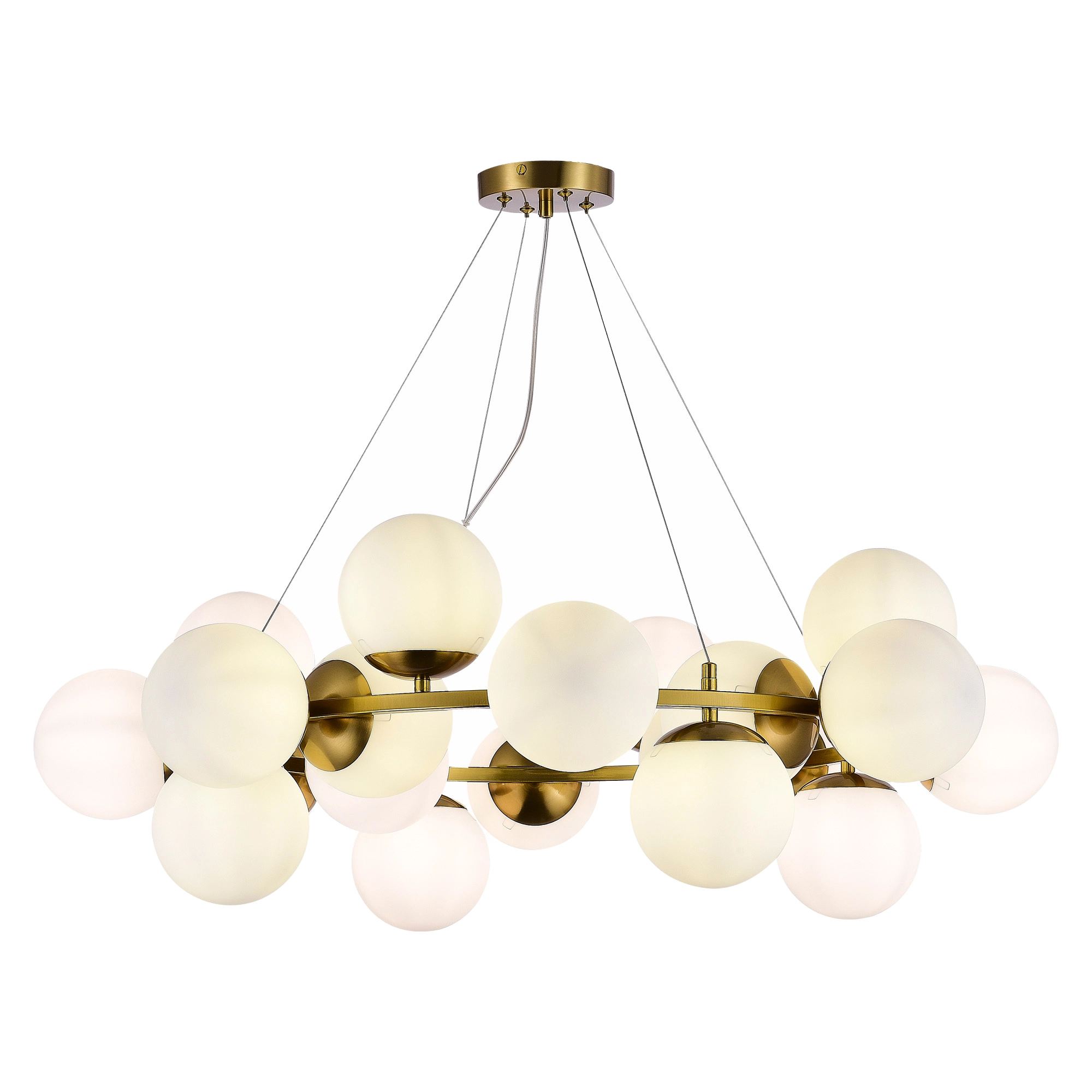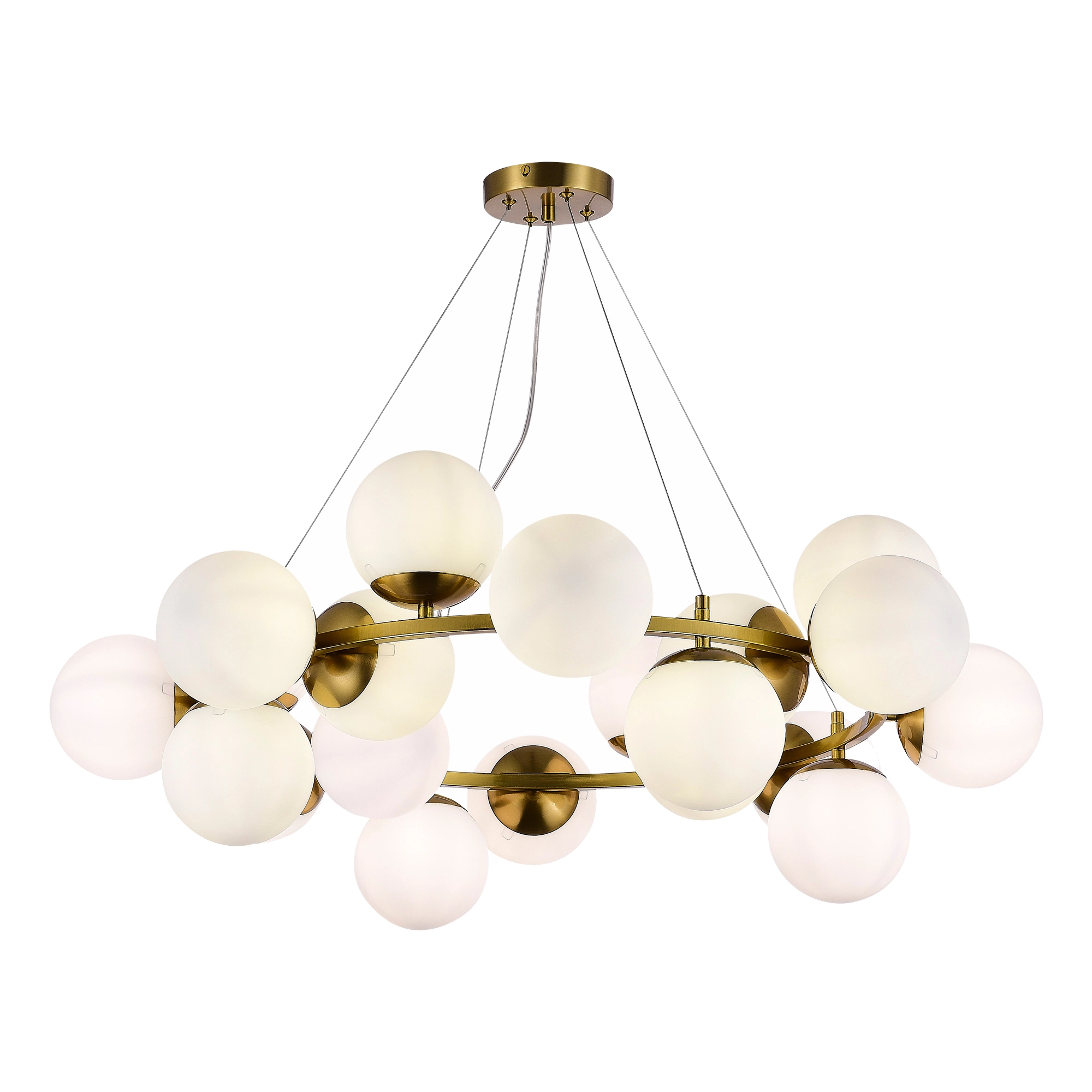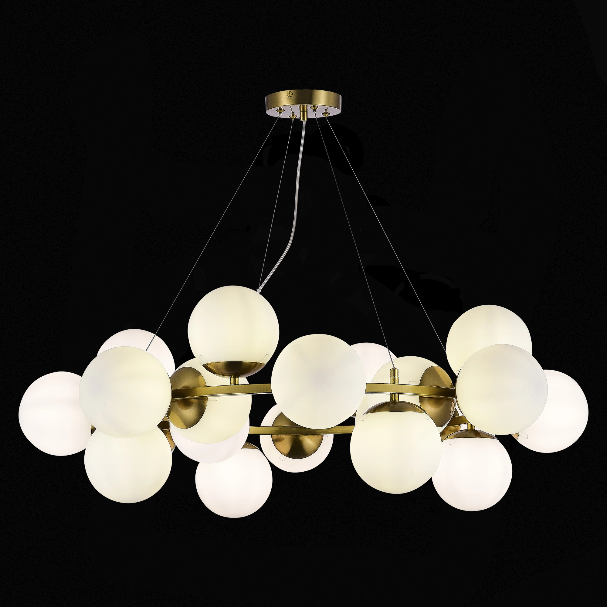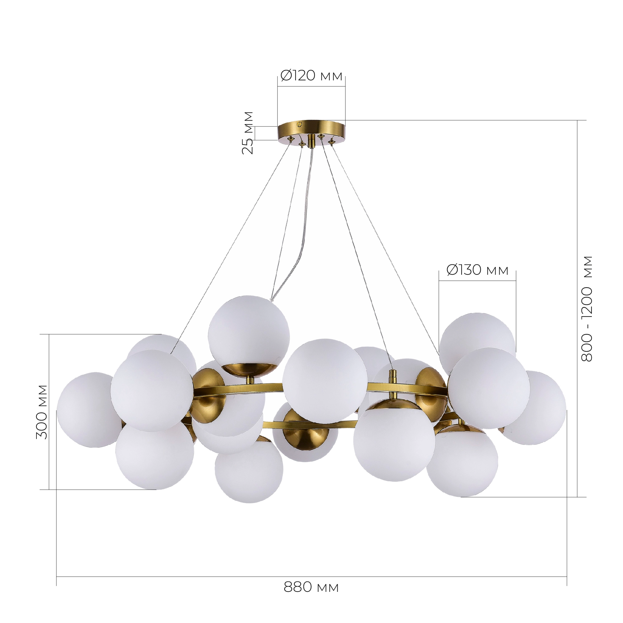 Артикул: SLE1191-203-20; Бренд: EVOLUCE; Коллекция: FRATTA; Стиль: Modern; товарная группа: Подвесные светильники; Степень защиты: IP20; Площадь освещения, м2: 60; Количество ламп: 20; Тип ламп: накаливания; Тип цоколя: E27; Мощность ламп, W: 60; Общая мощность, W: 1200; Материал каркаса: металл; Материал плафона: стекло, Стекло; Поверхность каркаса: матовая; Поверхность плафона: матовая; Цвет каркаса: золотистый; Цвет плафона: белый, Белый; Лампы в комплекте: Нет; Гарантия, мес: 12; высота: 990; Диаметр, мм: 880; Вес упаковки, кг: 7; Длина упаковки, см: 78; Ширина упаковки, см: 78; Высота упаковки, см: 32; Объем упаковки, м3: 7; Штрихкод: 4657780078819