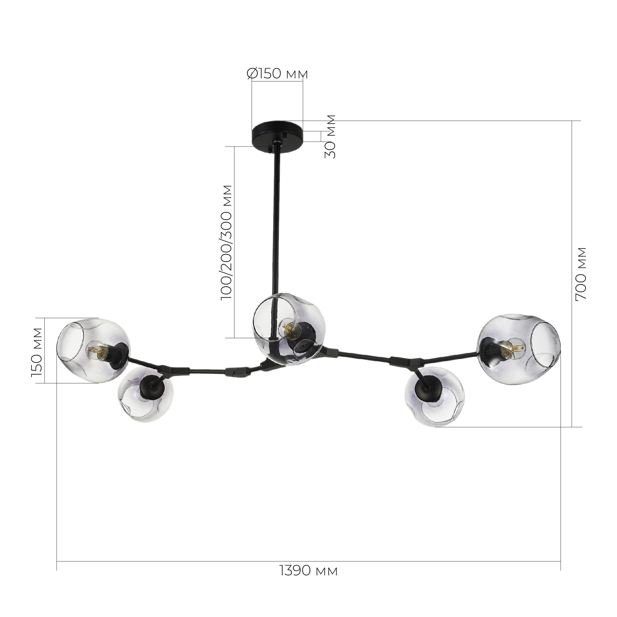 Артикул: SLE154843-05; Бренд: EVOLUCE; Коллекция: RAMETTO; Стиль: Modern; товарная группа: Подвесные светильники; Тип крепления: планка; Регулировка по высоте: Да; Степень защиты: IP20; Площадь освещения, м2: 10; Количество ламп: 5; Тип ламп: накаливания, Накаливания; Тип цоколя: E27; Мощность ламп, W: 40; Общая мощность, W: 200; Материал каркаса: металл, Металл; Материал плафона: стекло, Стекло; Цвет каркаса: черный, Черный, Чёрный, чёрный; Цвет плафона: дымчатый, Дымчатый; Лампы в комплекте: Нет; Гарантия, мес: 12; Длина, мм: 1390; Ширина, мм: 780; высота: 150; max высота: 700; Штрихкод: 4627176224946