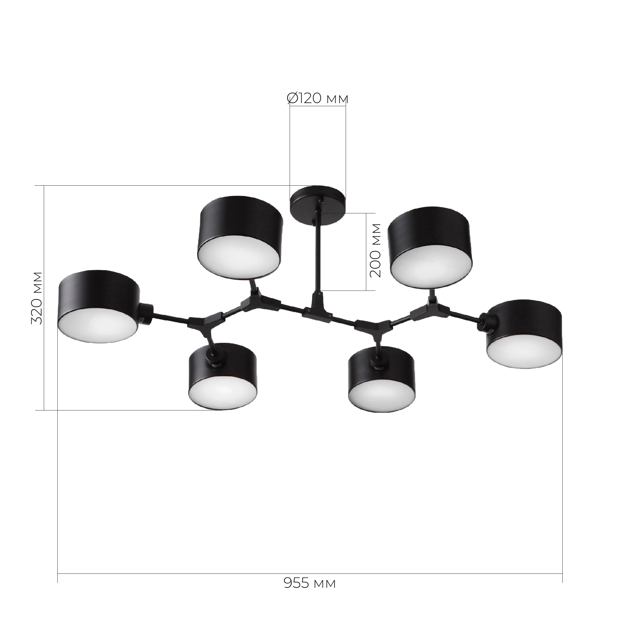 Артикул: SLE183402-06; Бренд: EVOLUCE; Коллекция: GIMENTO; Стиль: Scandinavian; товарная группа: Потолочные светильники; Регулировка по высоте: Нет; Степень защиты: IP20; Площадь освещения, м2: 18; Количество ламп: 6; Тип ламп: накаливания; Тип цоколя: E14; Мощность ламп, W: 60; Общая мощность, W: 360; Материал каркаса: металл; Материал плафона: металл / акрил; Поверхность каркаса: матовая; Поверхность плафона: матовая; Цвет каркаса: черный, Черный; Цвет плафона: черный, Черный; Лампы в комплекте: Нет; Гарантия, мес: 12; Длина, мм: 955; Ширина, мм: 730; высота: 320; Вес упаковки, кг: 2.8; Длина упаковки, см: 50; Ширина упаковки, см: 46; Высота упаковки, см: 10; Объем упаковки, м3: 2.8; Штрихкод: 4627176220160