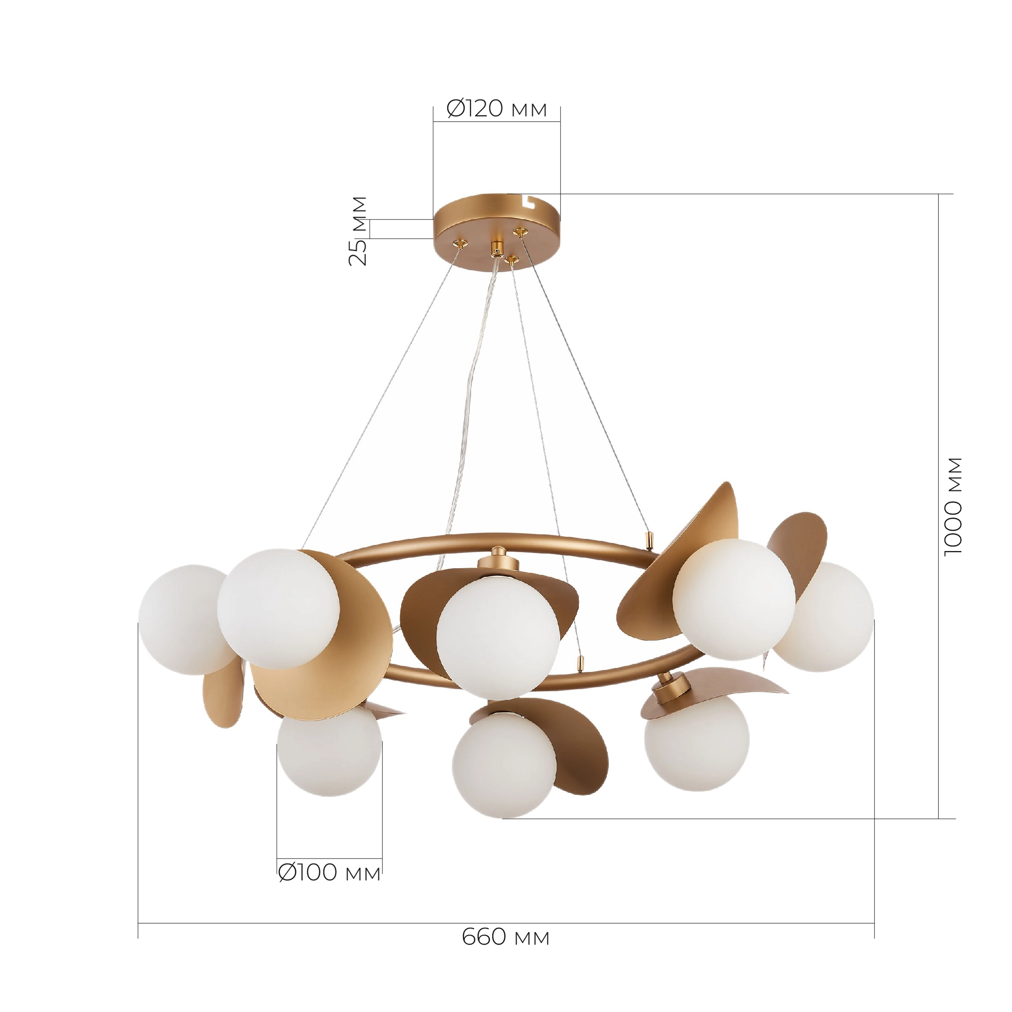 Артикул: SLE220503-08; Бренд: EVOLUCE; Коллекция: BOLZANO; Стиль: Modern; товарная группа: Подвесные светильники; Тип крепления: планка; Степень защиты: IP20; Площадь освещения, м2: 14; Количество ламп: 8; Тип ламп: LED; Тип цоколя: G9 LED; Мощность ламп, W: 5; Общая мощность, W: 40; Цветовая температура, K: 4000K; Материал каркаса: металл, Металл; Материал плафона: стекло, Стекло; Цвет каркаса: золотистый; Цвет плафона: белый, Белый; Лампы в комплекте: В комплекте; Гарантия, мес: 12; высота: 1000; Диаметр, мм: 660; Штрихкод: 4627201295750