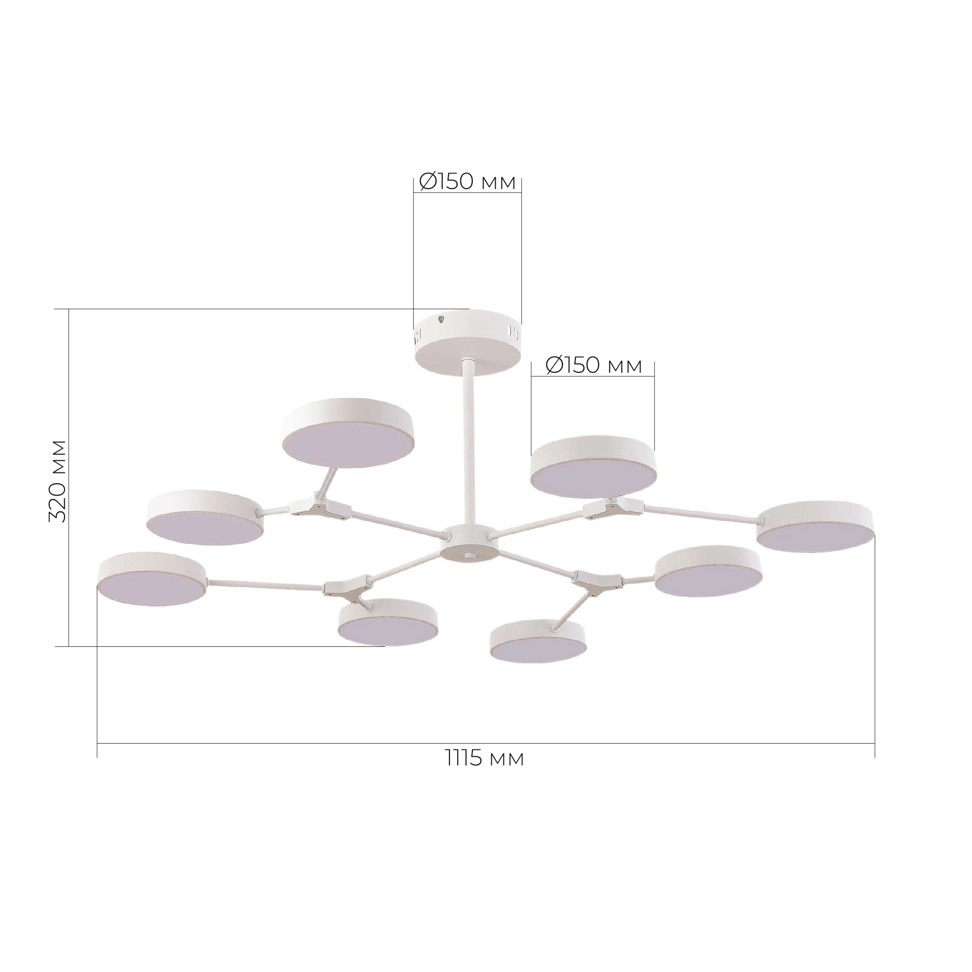Артикул: SLE6003-502-08; Бренд: EVOLUCE; Коллекция: MONTA; Стиль: Scandinavian; товарная группа: Потолочные светильники; Степень защиты: IP20; Площадь освещения, м2: 28; Количество ламп: 8; Тип ламп: LED; Тип цоколя: LED; Мощность ламп, W: 10; Общая мощность, W: 80; Световой поток, Lm: 8800; Цветовая температура, K: 3000K - 6000K; Материал каркаса: металл; Материал плафона: металл / пластик; Поверхность каркаса: матовая; Поверхность плафона: матовая; Цвет каркаса: белый, Белый; Цвет плафона: белый, Белый; Лампы в комплекте: В комплекте; Наличие пульта: Пульт диммируемый; Гарантия, мес: 36; высота: 320; Диаметр, мм: 1115; Вес упаковки, кг: 3.5; Длина упаковки, см: 45; Ширина упаковки, см: 16; Высота упаковки, см: 45; Объем упаковки, м3: 3.5; Штрихкод: 4656760014199