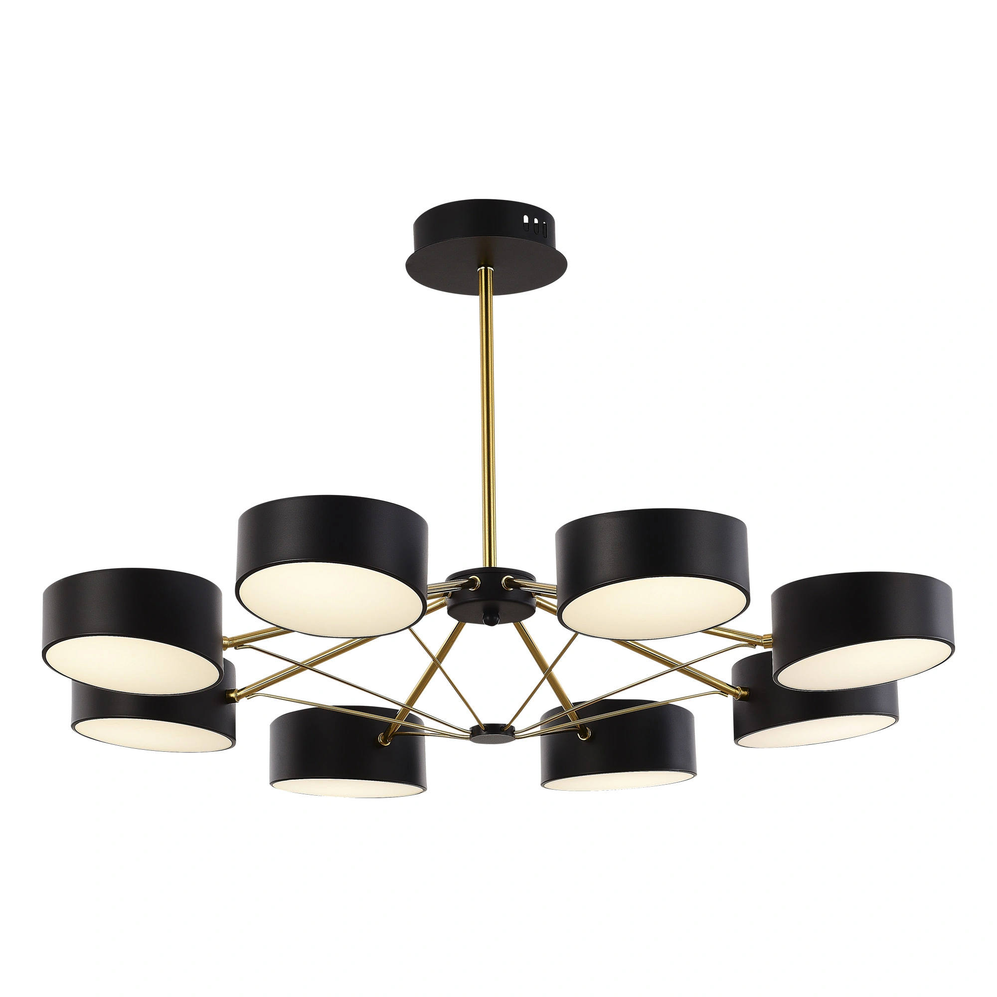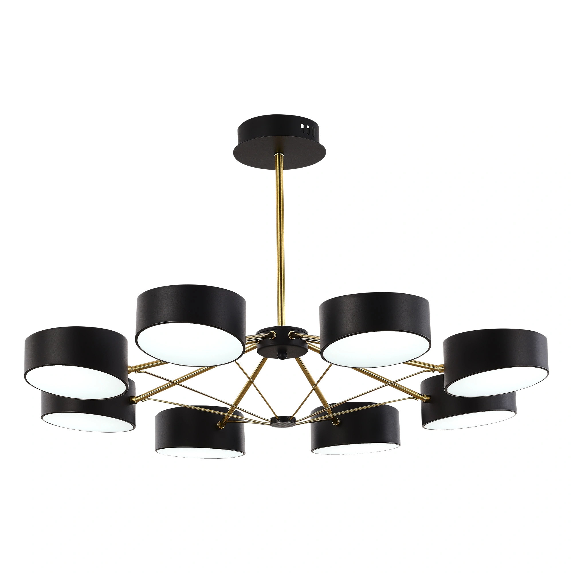 Артикул: SLE6005-402-08; Бренд: EVOLUCE; Коллекция: VALLE; Стиль: Scandinavian; товарная группа: Потолочные светильники; Степень защиты: IP20; Площадь освещения, м2: 28; Количество ламп: 8; Тип ламп: LED; Тип цоколя: LED; Мощность ламп, W: 10; Общая мощность, W: 80; Световой поток, Lm: 9600; Цветовая температура, K: 3000K - 6000K; Материал каркаса: металл; Материал плафона: металл / пластик; Поверхность каркаса: матовая; Поверхность плафона: матовая; Цвет каркаса: черный / золотистый; Цвет плафона: черный, Черный; Лампы в комплекте: В комплекте; Наличие пульта: Пульт диммируемый; Гарантия, мес: 36; высота: 480; Диаметр, мм: 810; Вес упаковки, кг: 4.5; Длина упаковки, см: 68; Ширина упаковки, см: 41; Высота упаковки, см: 18; Объем упаковки, м3: 4.5; Штрихкод: 4656760014243