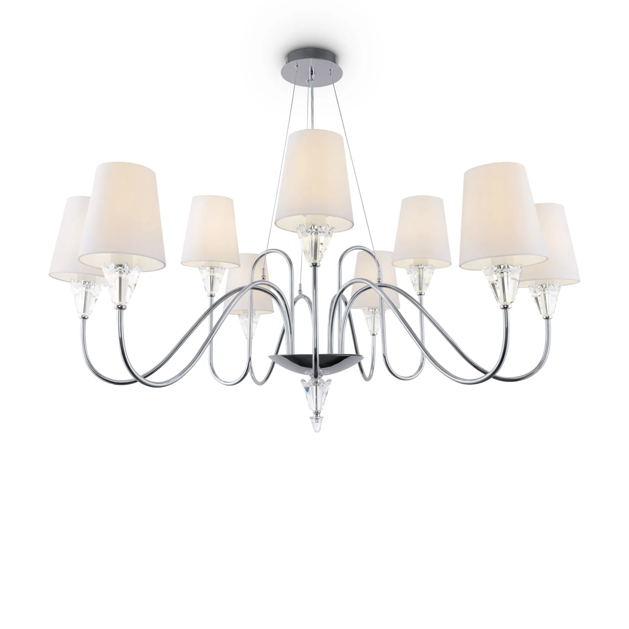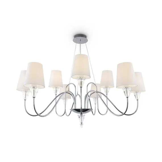 Артикул: MOD078PL-09CH; Бренд: Maytoni; Коллекция: MODERN; Стиль: Modern; Тип крепления: Крюк; Степень защиты: IP20; Напряжение питания, V: 220; Количество ламп: 9; Тип цоколя: E14; Мощность ламп, W: 40; Материал каркаса: металл, Металл; Материал плафона: ткань, Ткань; Цвет каркаса: хром, Хром; Цвет плафона: белый, Белый; Гарантия, мес: 24; высота: 510; Глубина, мм: 330; Диаметр, мм: 1000; Длина упаковки, см: 53; Ширина упаковки, см: 40; Объем упаковки, м3: 0.064; Штрихкод: 4251110097992