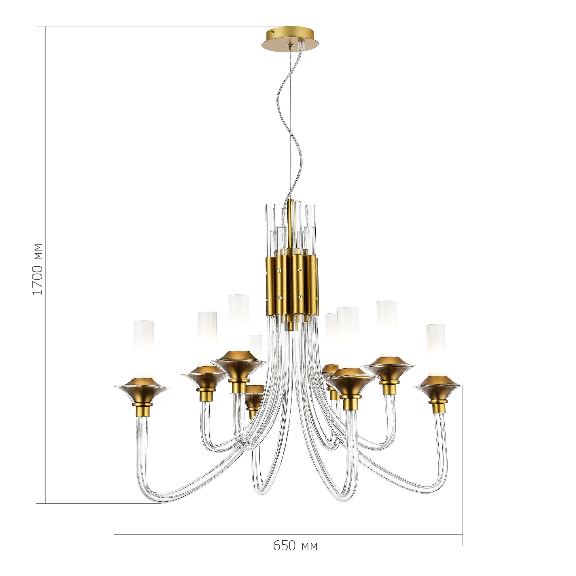 Артикул: SL1241.203.08; Бренд: ST Luce; Коллекция: VETRANO; Стиль: Art Deco; товарная группа: Подвесные светильники; Степень защиты: IP20; Площадь освещения, м2: 14; Количество ламп: 8; Тип ламп: накаливания; Тип цоколя: E14; Мощность ламп, W: 40; Общая мощность, W: 320; Материал каркаса: металл / стекло; Материал плафона: стекло, Стекло; Поверхность каркаса: глянцевая; Поверхность плафона: глянцевая; Цвет каркаса: золотистый; Цвет плафона: белый, Белый; Лампы в комплекте: Нет; Гарантия, мес: 12; высота: 610; max высота: 1500; Диаметр, мм: 750; Вес упаковки, кг: 5; Длина упаковки, см: 73; Ширина упаковки, см: 64; Высота упаковки, см: 33.5; Объем упаковки, м3: 5; Штрихкод: 4657785413813