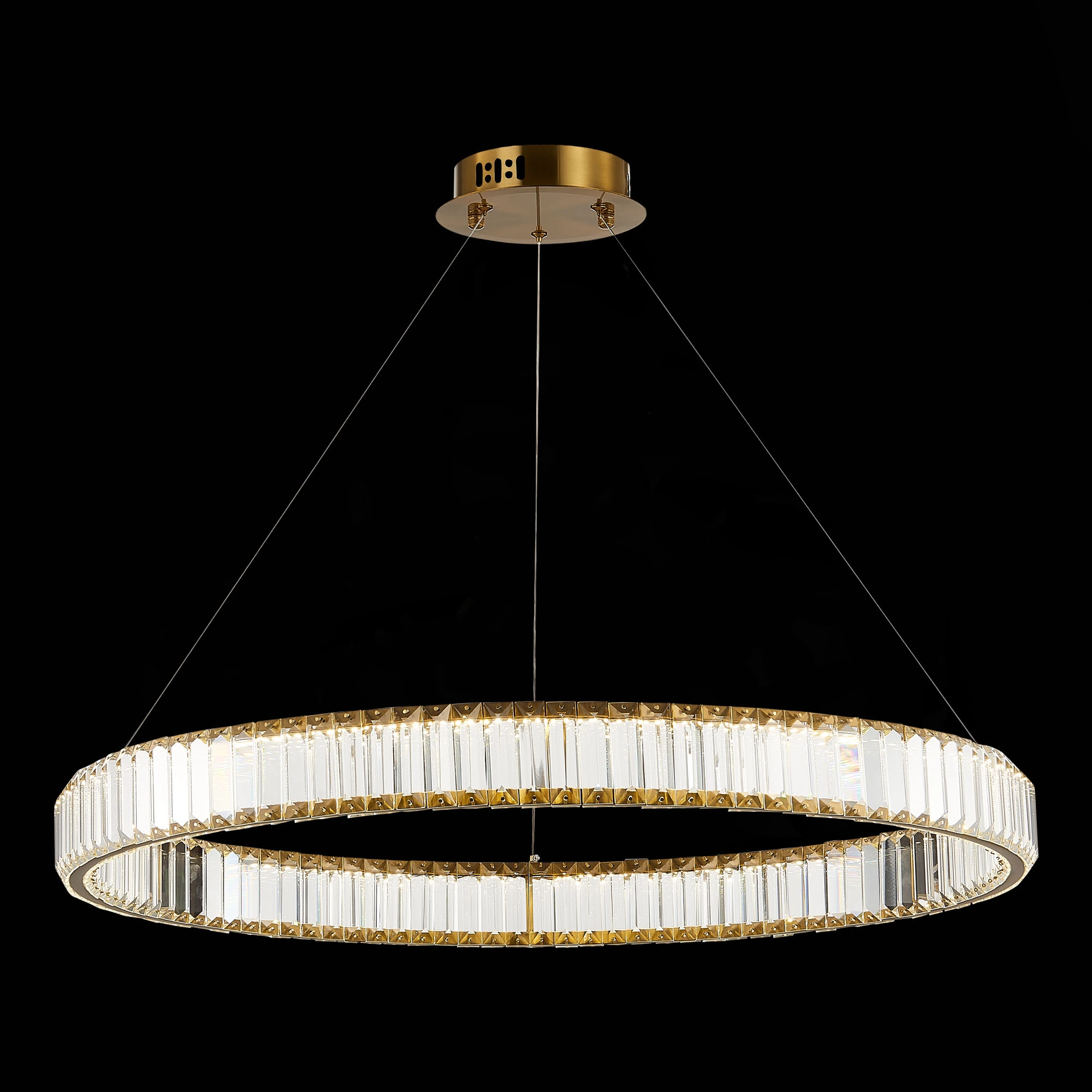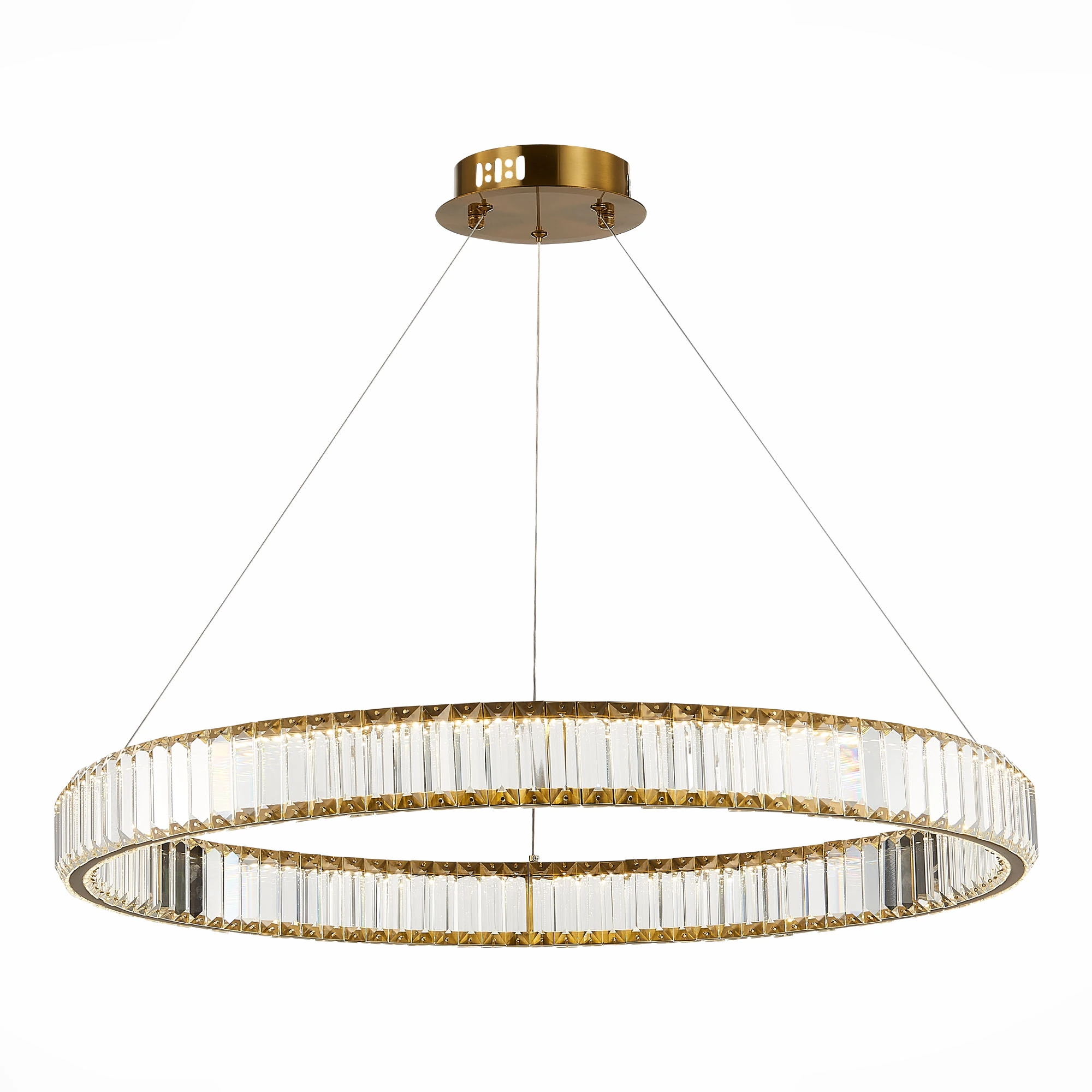 Артикул: SL1622.383.01; Бренд: ST Luce; Коллекция: TIVOLI; Стиль: Modern; товарная группа: Подвесные светильники; Тип крепления: планка; Степень защиты: IP20; Площадь освещения, м2: 18; Количество ламп: 1; Тип ламп: LED; Тип цоколя: LED; Мощность ламп, W: 52; Общая мощность, W: 52; Световой поток, Lm: 4420; Цветовая температура, K: 4000K; Материал каркаса: металл; Материал плафона: хрусталь; Поверхность каркаса: матовая; Поверхность плафона: глянцевая; Цвет каркаса: латунь, Латунь; Цвет плафона: прозрачный, Прозрачный; Лампы в комплекте: В комплекте; Гарантия, мес: 36; высота: 76; max высота: 1500; Диаметр, мм: 820; Вес упаковки, кг: 10.65; Длина упаковки, см: 87; Ширина упаковки, см: 87; Высота упаковки, см: 16; Объем упаковки, м3: 10.65; Штрихкод: 4627189021143