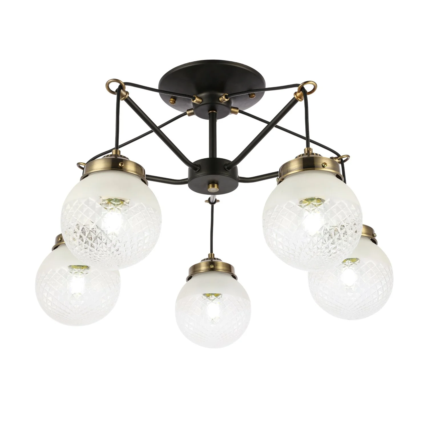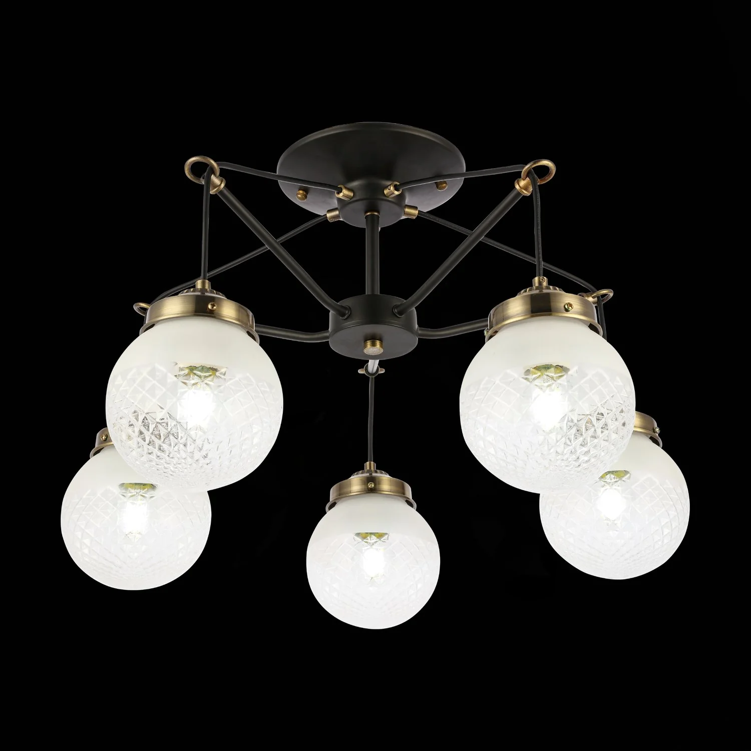 Артикул: SLE110302-05; Бренд: EVOLUCE; Коллекция: STRICCE; Стиль: Loft; товарная группа: Потолочные светильники; Регулировка по высоте: Нет; Степень защиты: IP20; Площадь освещения, м2: 15; Количество ламп: 5; Тип ламп: накаливания; Тип цоколя: E27; Мощность ламп, W: 60; Общая мощность, W: 200; Материал каркаса: металл; Материал плафона: стекло, Стекло; Поверхность каркаса: матовая; Поверхность плафона: глянцевая; Цвет каркаса: черный / бронзовый; Цвет плафона: прозрачный / белый; Лампы в комплекте: Нет; Гарантия, мес: 12; высота: 360; Диаметр, мм: 590; Вес упаковки, кг: 2.87; Длина упаковки, см: 31.5; Ширина упаковки, см: 59.5; Высота упаковки, см: 18.5; Объем упаковки, м3: 2.87; Штрихкод: 4627147638604