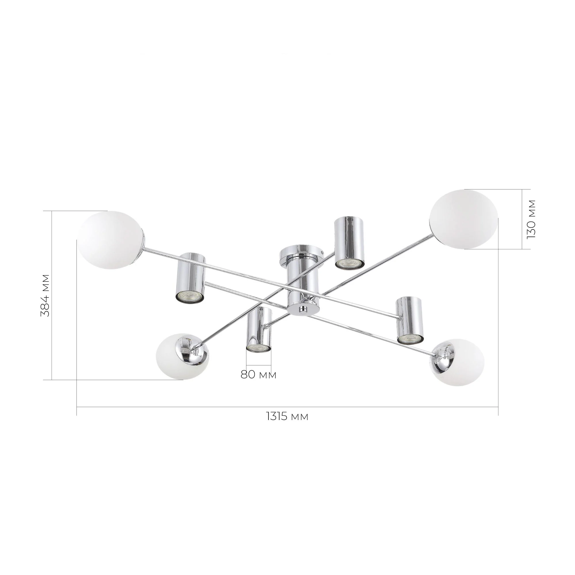Артикул: SLE1105-102-08; Бренд: EVOLUCE; Коллекция: RAITO; Стиль: Modern; товарная группа: Потолочные светильники; Степень защиты: IP20; Площадь освещения, м2: 19; Количество ламп: 4+4; Тип ламп: накаливания, LED; Тип цоколя: GU10 + E27; Мощность ламп, W: 5+60; Общая мощность, W: 260; Цветовая температура, K: 4000K; Материал каркаса: металл; Материал плафона: стекло, Стекло; Поверхность каркаса: глянцевая; Поверхность плафона: матовая; Цвет каркаса: хром, Хром; Цвет плафона: белый, Белый; Лампы в комплекте: В комплекте; Гарантия, мес: 12; высота: 440; Диаметр, мм: 220; Вес упаковки, кг: 3.8; Длина упаковки, см: 80; Ширина упаковки, см: 24; Высота упаковки, см: 32; Объем упаковки, м3: 3.8; Штрихкод: 4657785413844