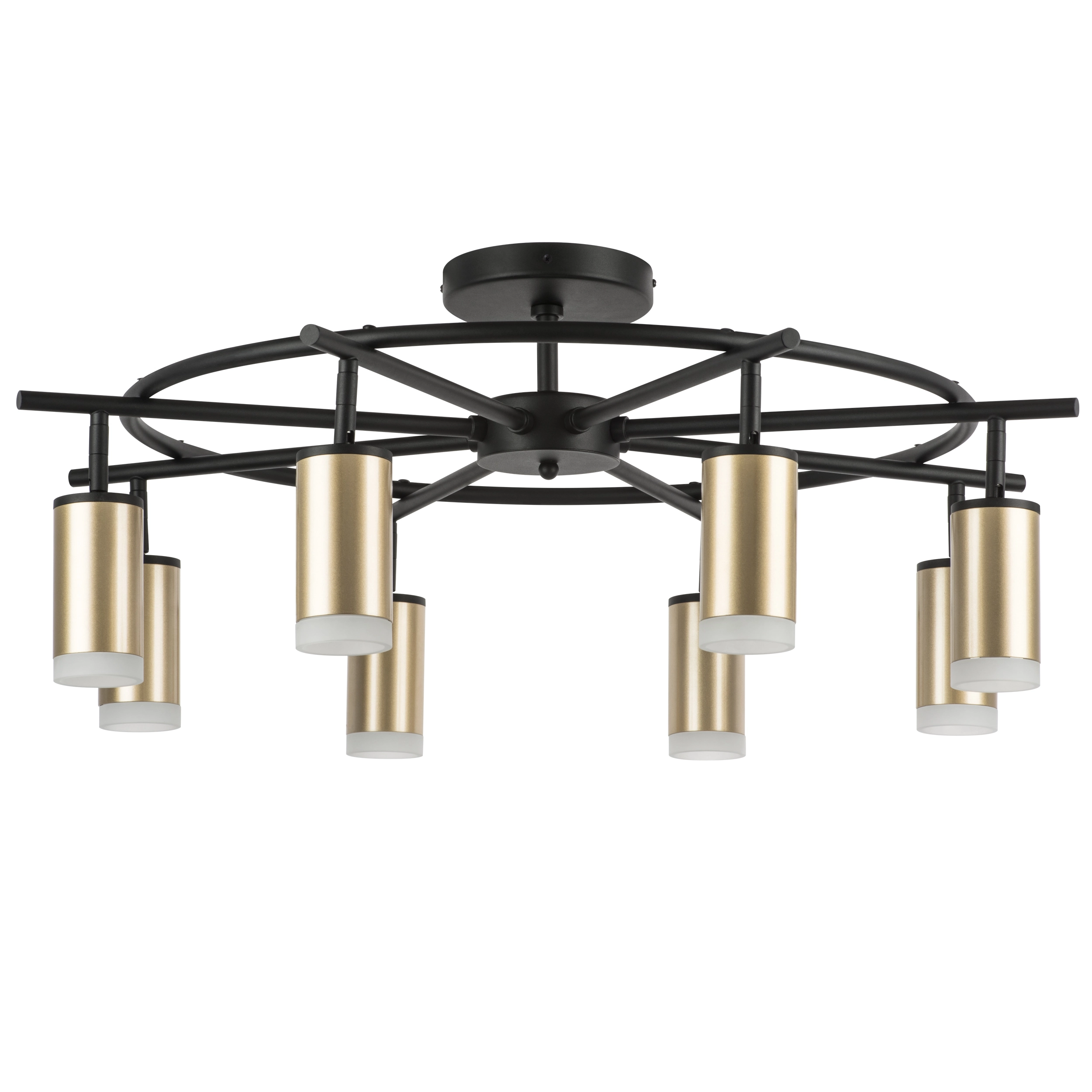 Артикул: LR7184080; Бренд: Lightstar; Коллекция: Rullo; Стиль: High-tech; Тип светильника: Потолочная; место размещения: Жилая; Тип крепления: Накладной; На планку; Степень защиты: IP20; Напряжение питания, V: 220; Количество ламп: 8; Тип ламп: ГЛН; LED; Тип цоколя: GU10; Мощность ламп, W: 50; Общая мощность LED, W: 48; Общая мощность, W: 400; Материал каркаса: металл, Металл; Материал плафона: Металл; Акрил; Цвет каркаса: черный, Черный; Цвет плафона: Матовый; Золото; Лампы в комплекте: Нет; высота: 315; Диаметр, мм: 900; Высота потолочной чаши, мм: 25; Диаметр потолочной чаши, мм: 150; Вес, кг: 4,174; Штрихкод: 8053176898218
