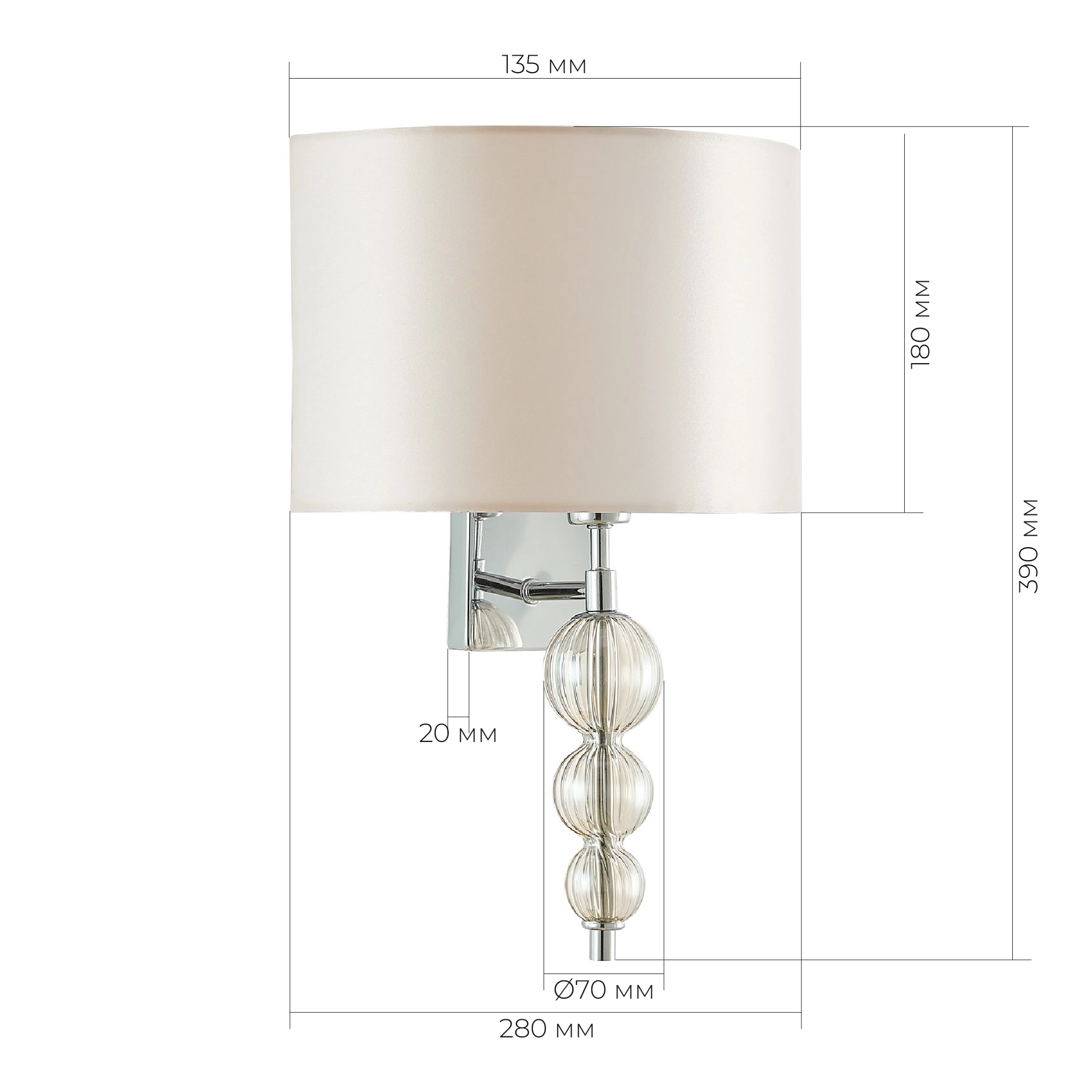 Артикул: SLE105701-01; Бренд: EVOLUCE; Коллекция: RAMER; Стиль: Classic; товарная группа: Настенные светильники; Степень защиты: IP20; Площадь освещения, м2: 2; Количество ламп: 1; Тип ламп: накаливания; Тип цоколя: E14; Мощность ламп, W: 40; Общая мощность, W: 40; Материал каркаса: металл / стекло; Материал плафона: текстиль; Поверхность каркаса: глянцевая; Поверхность плафона: матовая; Цвет каркаса: хром, Хром; Цвет плафона: светло-бежевый; Лампы в комплекте: Нет; Гарантия, мес: 12; Ширина, мм: 280; высота: 390; Глубина, мм: 165; Вес упаковки, кг: 1.09; Длина упаковки, см: 29.5; Ширина упаковки, см: 17; Высота упаковки, см: 30.5; Объем упаковки, м3: 1.09; Штрихкод: 4627176224410