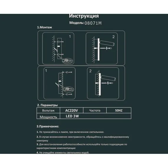Артикул: 08071M,20; Бренд: Kink light; Серия: Ризи; Стиль: Loft; Тип светильника: Бра и подсветки; место размещения: Для комнаты; Степень защиты: IP20; Площадь освещения, м2: 1; Количество ламп: 1; Тип ламп: LED; Тип цоколя: LED; Мощность ламп, W: 3; Общая мощность, W: 3; Световой поток, Lm: 240; Индекс цветопередачи: Ra > 80; Материал: Металл; Цвет каркаса: бронза, Бронза; Диммирование: нет; Наличие пульта: Нет; Гарантия, мес: 12; Длина, мм: 170; Ширина, мм: 70; высота: 170; Глубина, мм: 30; Вес упаковки, кг: 0.42; Длина упаковки, см: 42.5; Ширина упаковки, см: 18.5; Высота упаковки, см: 36; Объем упаковки, м3: 0.001; Штрихкод: 6900000806685