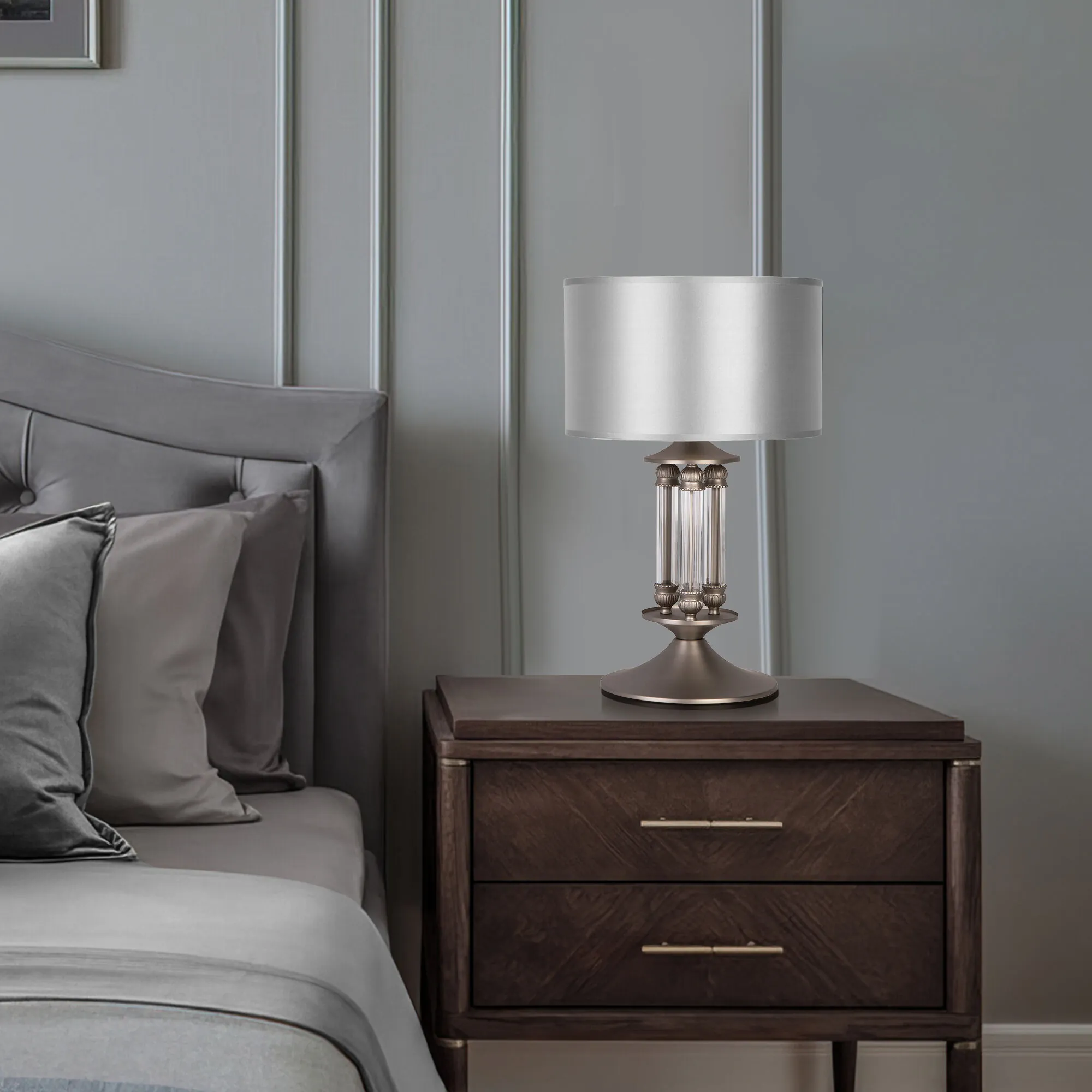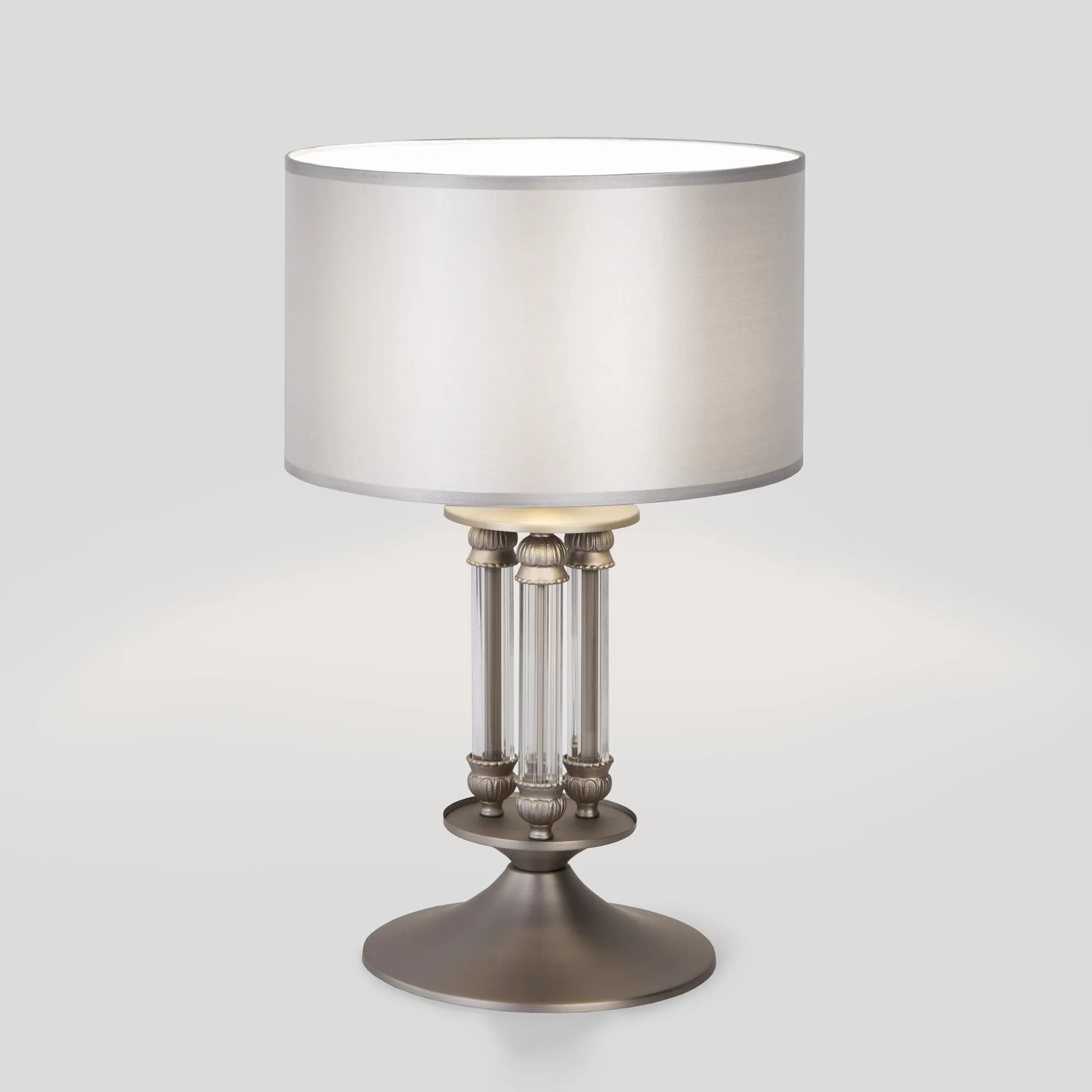 Артикул: 01045/1; Бренд: Eurosvet; Серия: Adagio; Стиль: Английский; Classic; товарная группа: настольный светильник; Тип светильника: сменная лампа; место размещения: спальня;гостиная;кабинет; Срок службы, г: 8; Степень защиты: IP20; Питание: 230 В, 50 Гц; Площадь освещения, м2: 3; Класс электро-безопасности: II; Температурный режим: -10 ... +40; Тип ламп: металл; Тип цоколя: E14; Материал: металл;ткань;стекло; Материал плафона: ткань; Цвет: серебро;никель; Цвет каркаса: никель, Никель; Цвет плафона: серебро; Умный дом: совместим с умной розеткой; Гарантия, мес: 12; Длина, мм: 320; Ширина, мм: 320; высота: 510; Высота встраиваемой части, мм: 40; Длина кабеля, м: 1.3; Вес упаковки, кг: 2.421; Длина упаковки, см: 32.8; Ширина упаковки, см: 33.6; Высота упаковки, см: 40.8; Объем упаковки, м3: 0.04496486; Штрихкод: 4690389125331