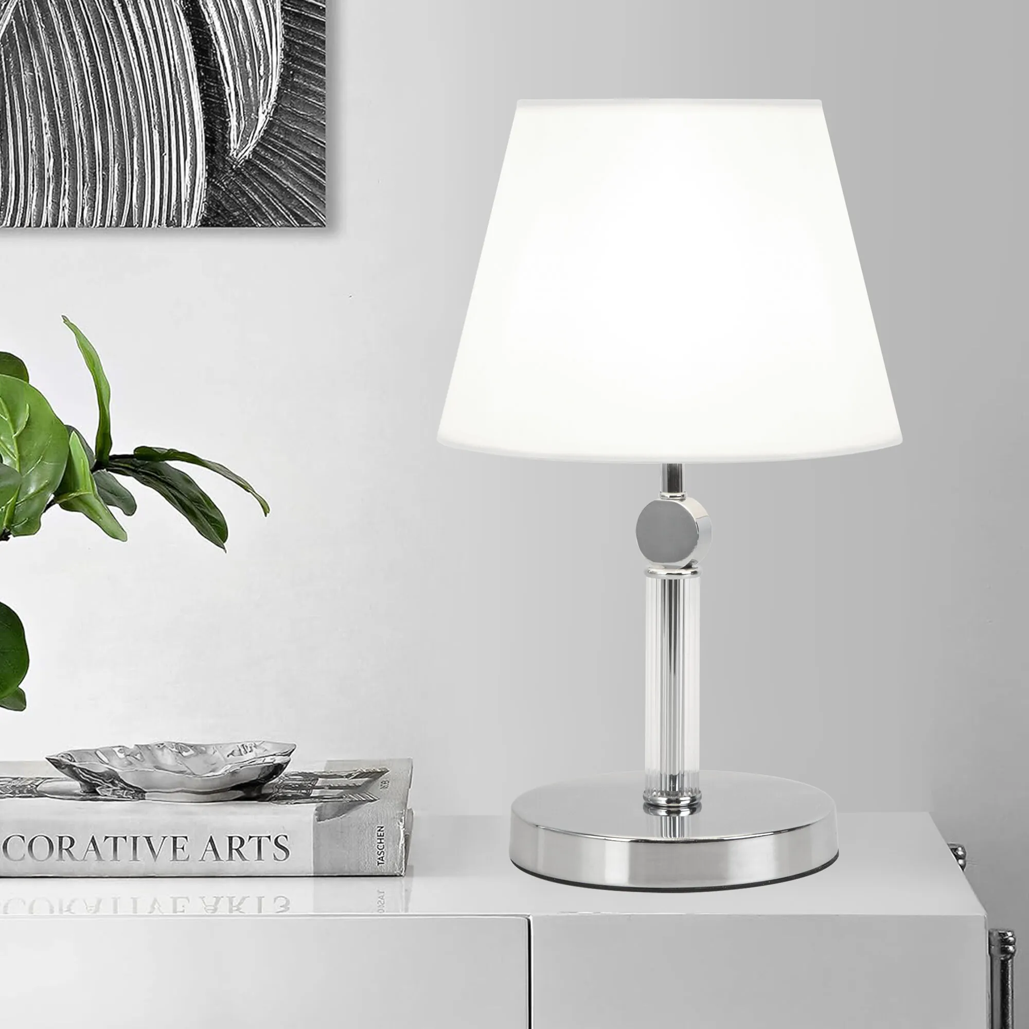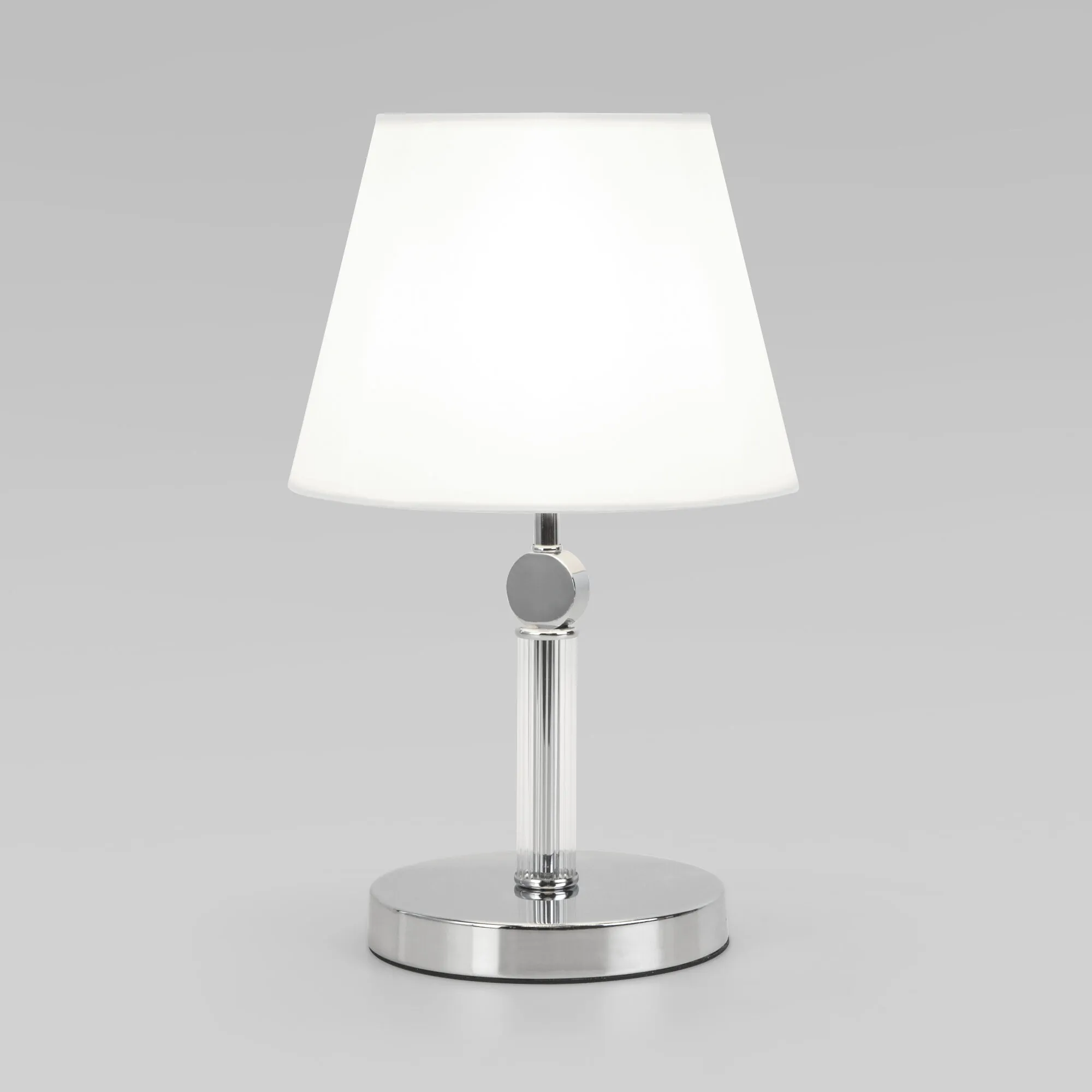Артикул: 01145/1; Бренд: Eurosvet; Серия: Conso; Стиль: Classic; товарная группа: настольный светильник; Тип светильника: сменная лампа; место размещения: гостиная;спальня; Срок службы, г: 6; Степень защиты: IP20; Питание: 230 В, 50 Гц; Площадь освещения, м2: 2; Класс электро-безопасности: II; Температурный режим: -10 ... +40; Тип ламп: металл; Тип цоколя: E27; Материал: металл;ткань; Материал плафона: ткань; Цвет: хром; Цвет каркаса: хром, Хром; Цвет плафона: белый, Белый; Умный дом: совместим с умной розеткой; Гарантия, мес: 12; Длина, мм: 250; Ширина, мм: 250; высота: 390; Высота встраиваемой части, мм: 40; Вес упаковки, кг: 1.913; Длина упаковки, см: 28; Ширина упаковки, см: 27.2; Высота упаковки, см: 33.6; Объем упаковки, м3: 0.02558976; Штрихкод: 4690389191510