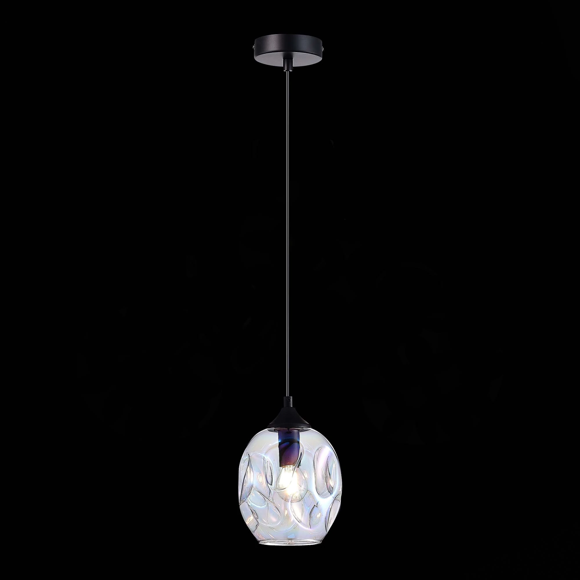 Артикул: SL1188.403.01; Бренд: ST Luce; Коллекция: IDESIA; Стиль: Modern; товарная группа: Подвесные светильники; Тип крепления: планка; Степень защиты: IP20; Площадь освещения, м2: 2; Количество ламп: 1; Тип ламп: накаливания; Тип цоколя: E14; Мощность ламп, W: 40; Общая мощность, W: 40; Материал каркаса: металл; Материал плафона: стекло, Стекло; Поверхность каркаса: матовая; Поверхность плафона: глянцевая; Цвет каркаса: черный, Черный; Цвет плафона: радужный; Лампы в комплекте: Нет; Гарантия, мес: 12; высота: 205; max высота: 1200; Диаметр, мм: 150; Вес упаковки, кг: 0.8; Длина упаковки, см: 27; Ширина упаковки, см: 21; Высота упаковки, см: 22; Объем упаковки, м3: 0.8; Штрихкод: 4657778403173