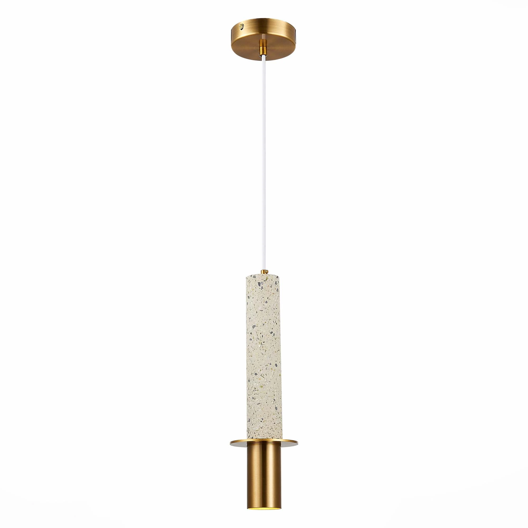 Артикул: SL1211.513.01; Бренд: ST Luce; Коллекция: VARESE; Стиль: Mid-century; товарная группа: Подвесные светильники; Степень защиты: IP20; Площадь освещения, м2: 2; Количество ламп: 1; Тип ламп: LED; Тип цоколя: GU10; Мощность ламп, W: 5; Общая мощность, W: 5; Цветовая температура, K: 4000K; Материал каркаса: металл; Материал плафона: металл / мрамор; Поверхность каркаса: матовая; Поверхность плафона: матовая; Цвет каркаса: золотистый; Цвет плафона: белый / золотистый; Лампы в комплекте: В комплекте; Гарантия, мес: 12; высота: 360; max высота: 1400; Диаметр, мм: 100; Вес упаковки, кг: 0.8; Длина упаковки, см: 47; Ширина упаковки, см: 17; Высота упаковки, см: 18; Объем упаковки, м3: 0.8; Штрихкод: 4627201295569