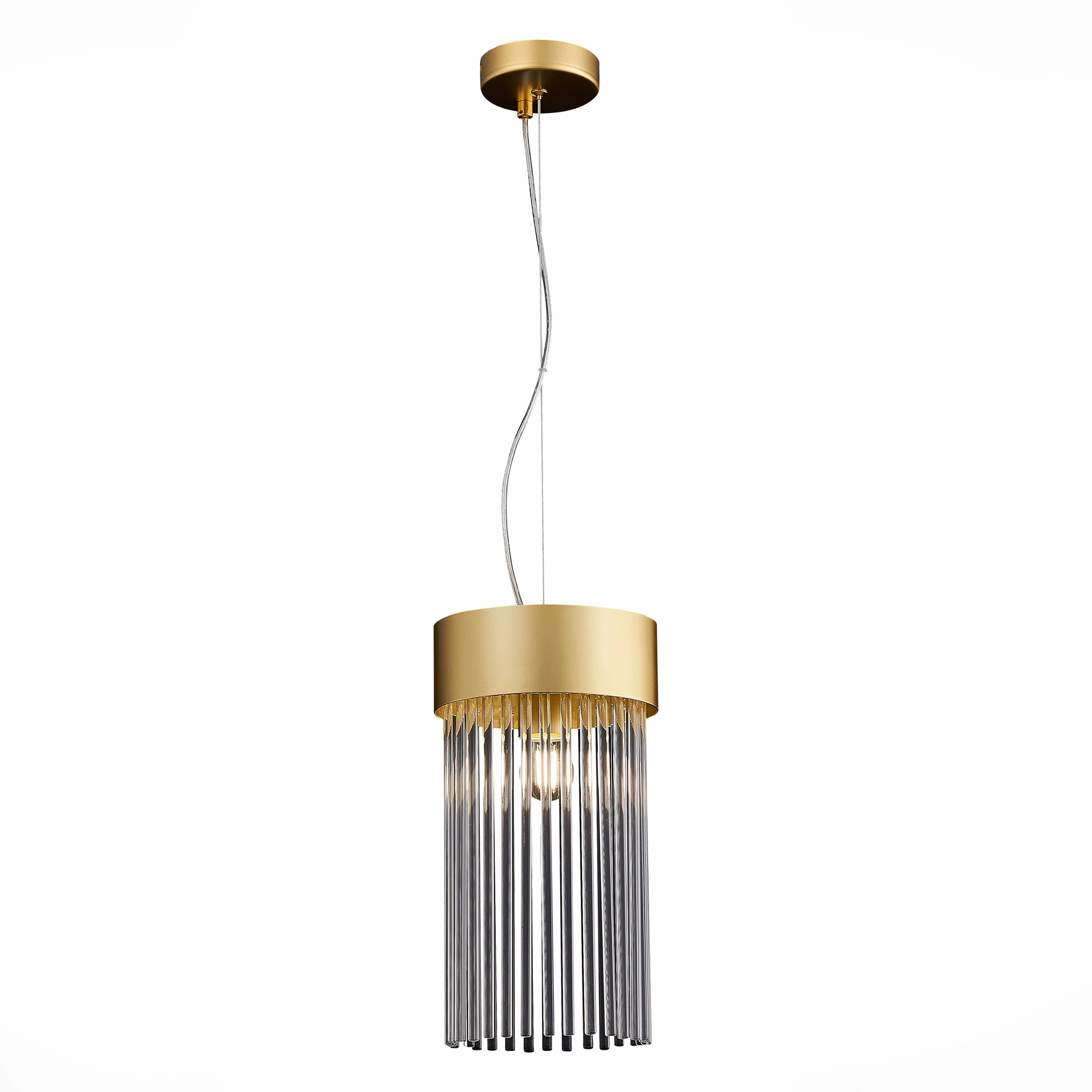 Артикул: SL1225.203.01; Бренд: ST Luce; Коллекция: CONTATTO; Стиль: Art Deco; товарная группа: Подвесные светильники; Регулировка по высоте: Нет; Степень защиты: IP20; Площадь освещения, м2: 3; Количество ламп: 1; Тип ламп: накаливания; Тип цоколя: E27; Мощность ламп, W: 60; Общая мощность, W: 60; Материал каркаса: металл; Материал плафона: металл / стекло; Поверхность каркаса: матовая; Поверхность плафона: матовая / глянцевая; Цвет каркаса: золотистый; Цвет плафона: золотистый / прозрачный; Лампы в комплекте: Нет; Гарантия, мес: 12; высота: 330; max высота: 1530; Диаметр, мм: 180; Вес упаковки, кг: 2.3; Длина упаковки, см: 53; Ширина упаковки, см: 23; Высота упаковки, см: 16; Объем упаковки, м3: 2.3; Штрихкод: 4627189024892