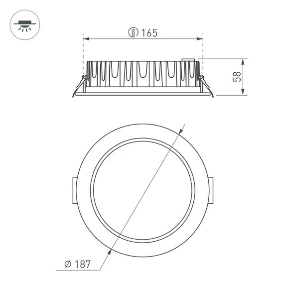 Артикул: 041612; Бренд: Arlight; товарная группа: Светильник; Тип крепления: встраиваемый; Степень защиты: IP54; Напряжение питания, V: 230; Угол рассеивания, град: 110; Класс электро-безопасности: II; Общая мощность, W: 21; Световой поток, Lm: 1400; Цветовая температура, K: 3000; Индекс цветопередачи: >90; Цвет: белый; Диммирование: При замене драйвера; Гарантия, мес: 60; Длина, мм: 187; Ширина, мм: 187; высота: 58; Диаметр, мм: 187; Диаметр монтажного отверстия, мм: 165