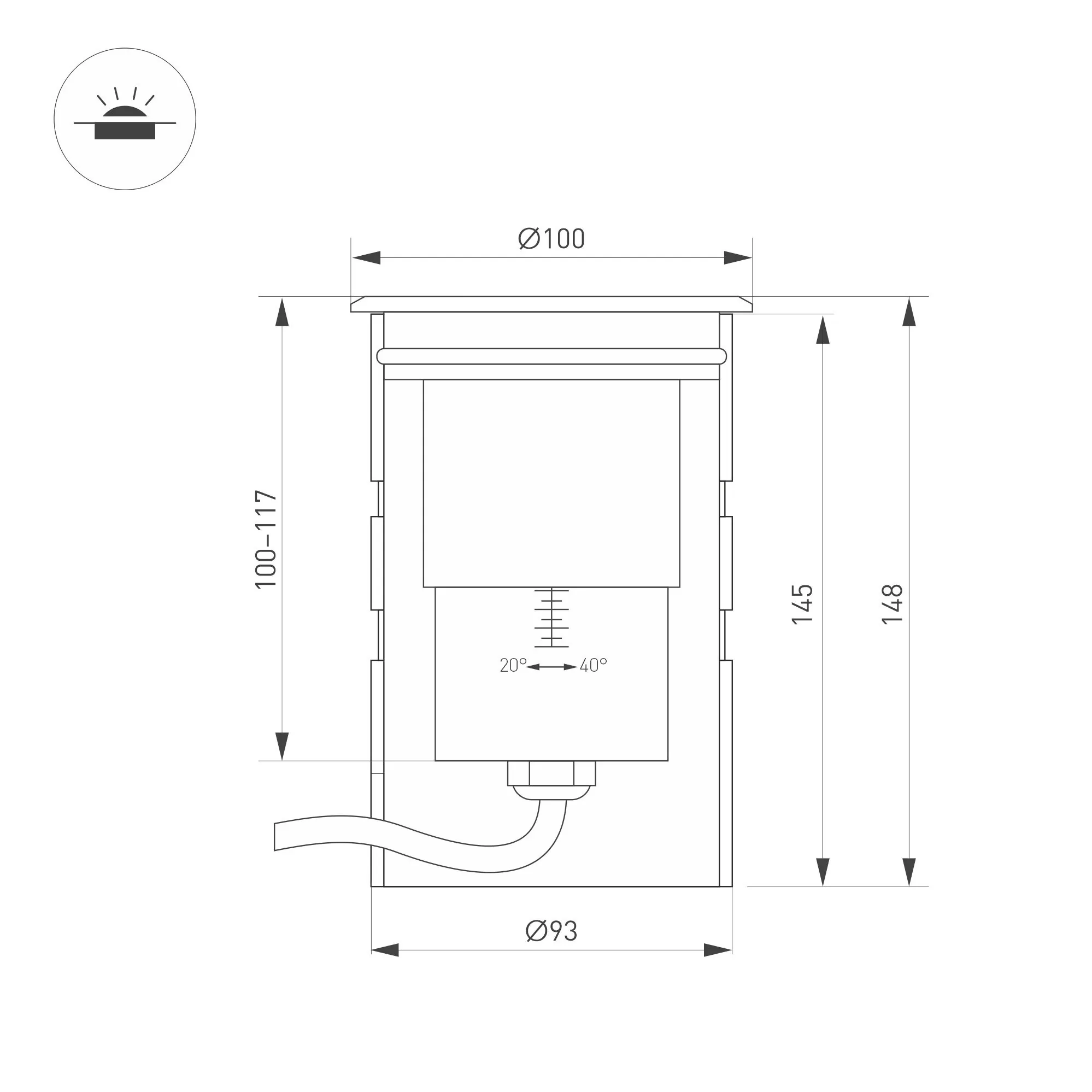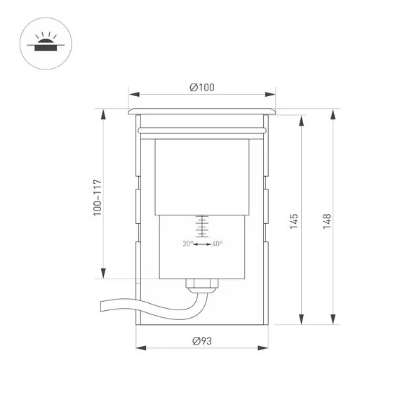 Артикул: 038172; Бренд: Arlight; товарная группа: Светильник; Тип крепления: встраиваемый; Степень защиты: IP67; Напряжение питания, V: 24; Угол рассеивания, град: 20, max: 40; Класс электро-безопасности: III; Температурный режим: -40 °C - 40 °C; Общая мощность, W: 15; Световой поток, Lm: 550, 980; Цветовая температура, K: 3000; Индекс цветопередачи: >80; Материал плафона: стекло, Стекло; Цвет: Серебристый; Диммирование: нет; Гарантия, мес: 36; Длина, мм: 100; Ширина, мм: 100; высота: 148; Диаметр, мм: 100; Диаметр монтажного отверстия, мм: 93; Глубина монтажного отверстия, мм: 145
